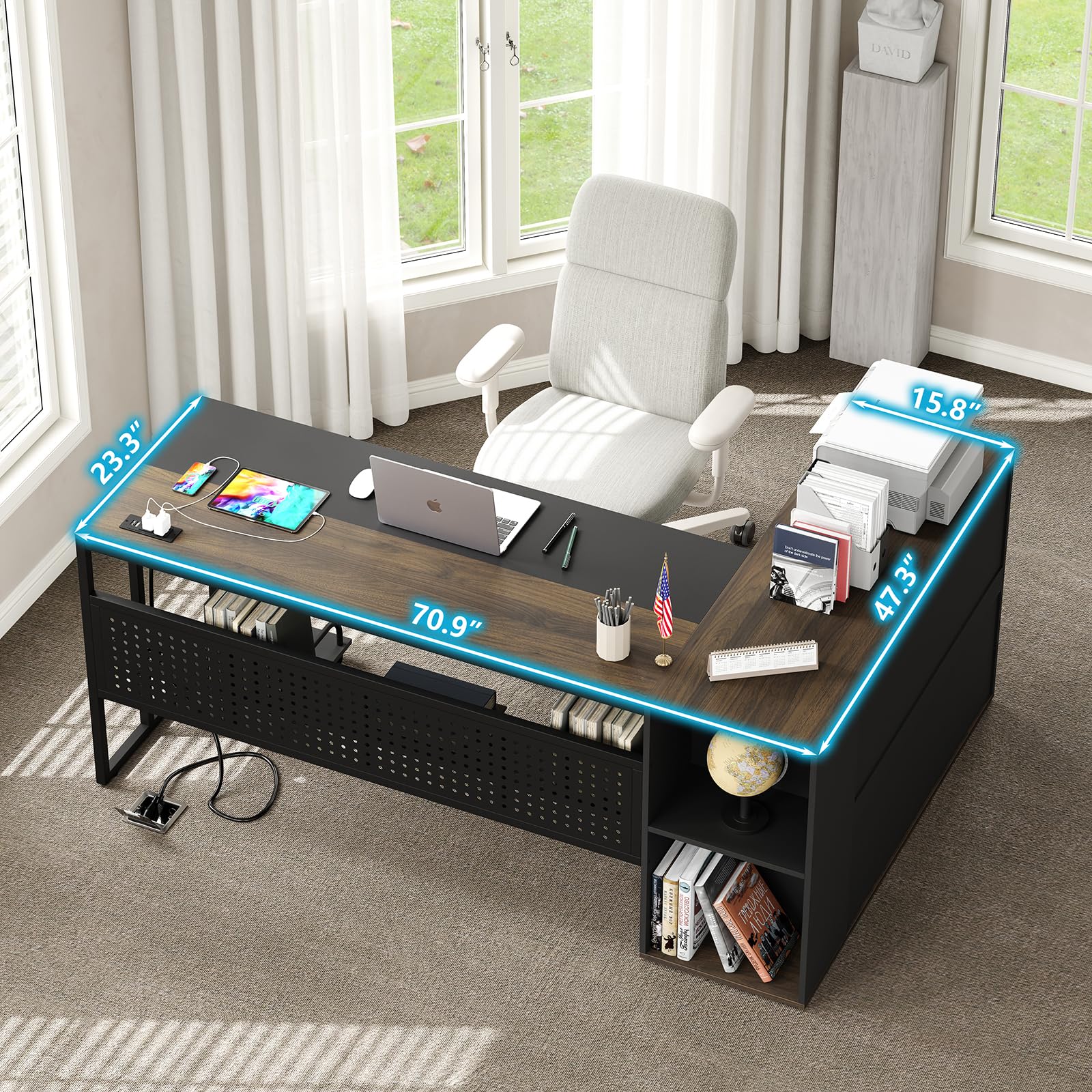 71 inch Executive Desk, L Shaped Desk with Cabinet Storage, Executive Office