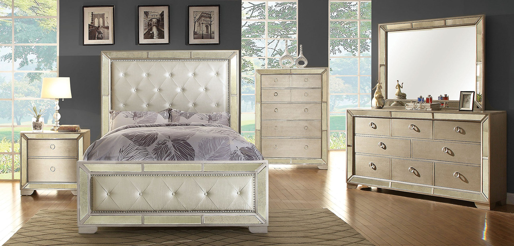 - Reflective mirror panels surrounding edges for luxury feel; Felt-lined top drawer