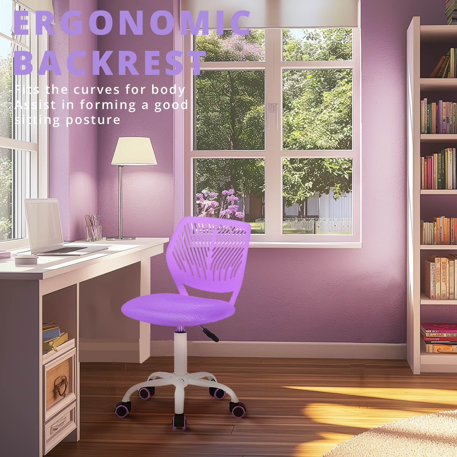 Task Chair 360 Swivel, Low Mid PP Mesh Back Fabric Seat, Height Adjustable, Rolling Castor, W15.7inces x D15.2inces x H29.5-34.2inches (Purple)