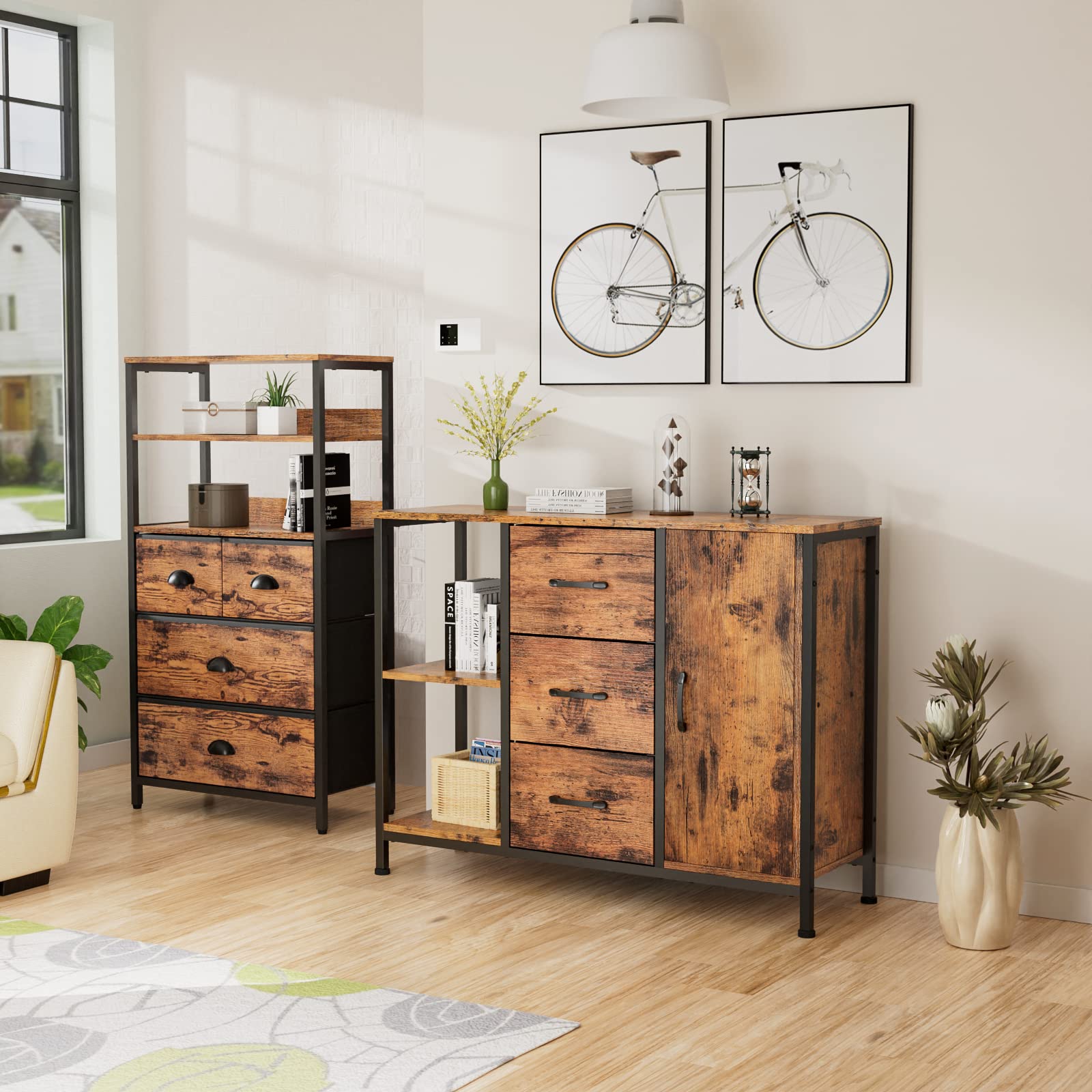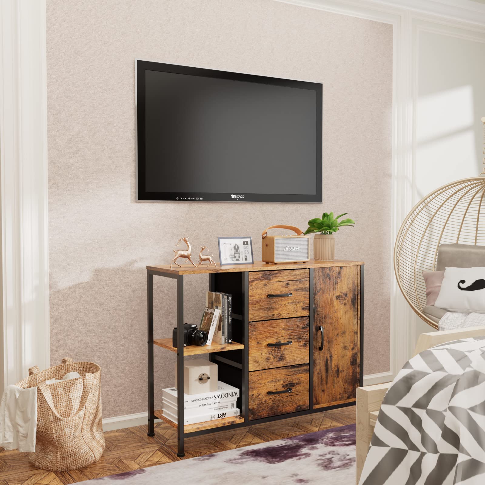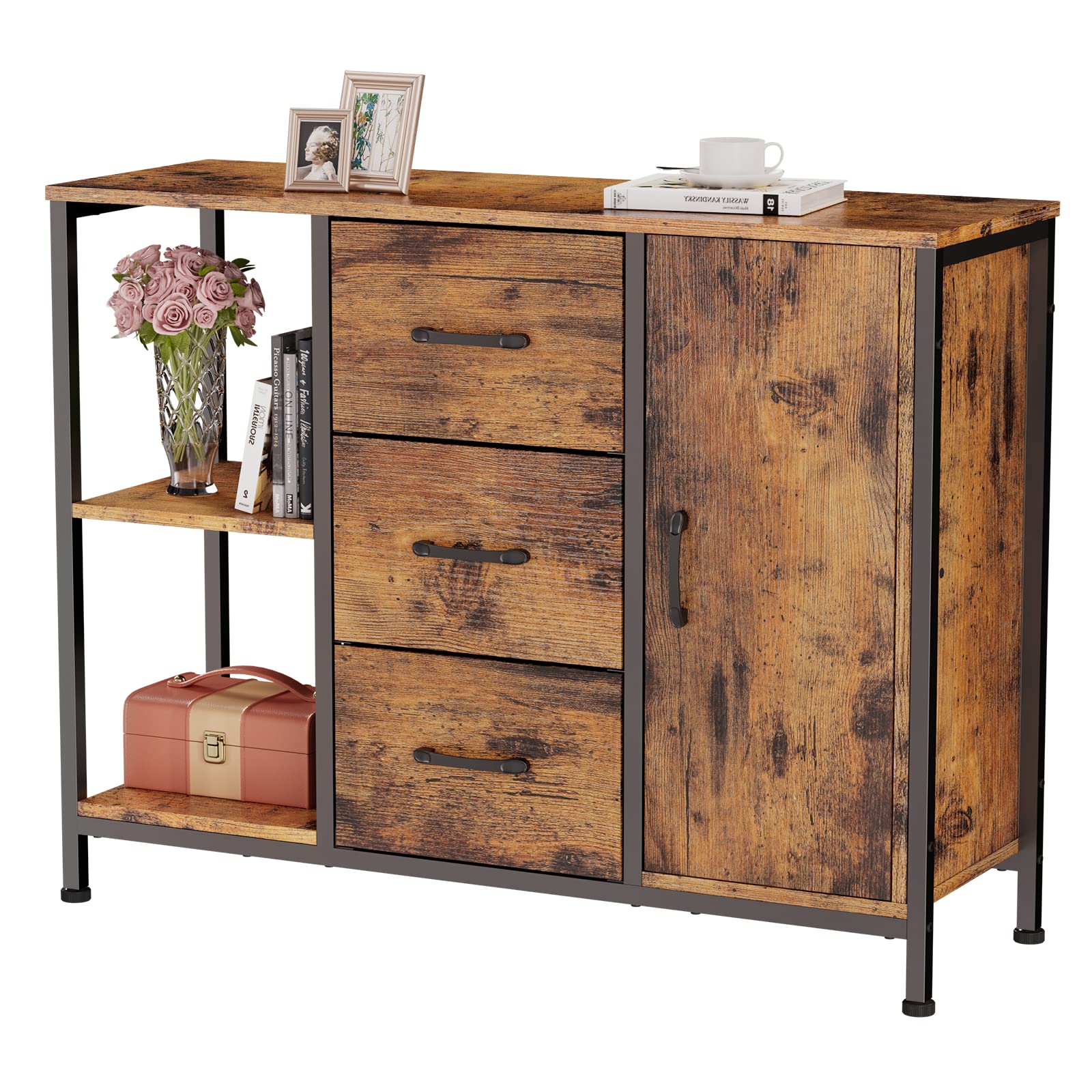 - Stunning Partition Design The entire storage cabinet has been designed with three different storage partitions, consisting of a closed space with doors, 2 two open shelves, and 3 easy-glide fabric drawers, offering a variety of storage options while providing enough capacity to meet all your storage needs.