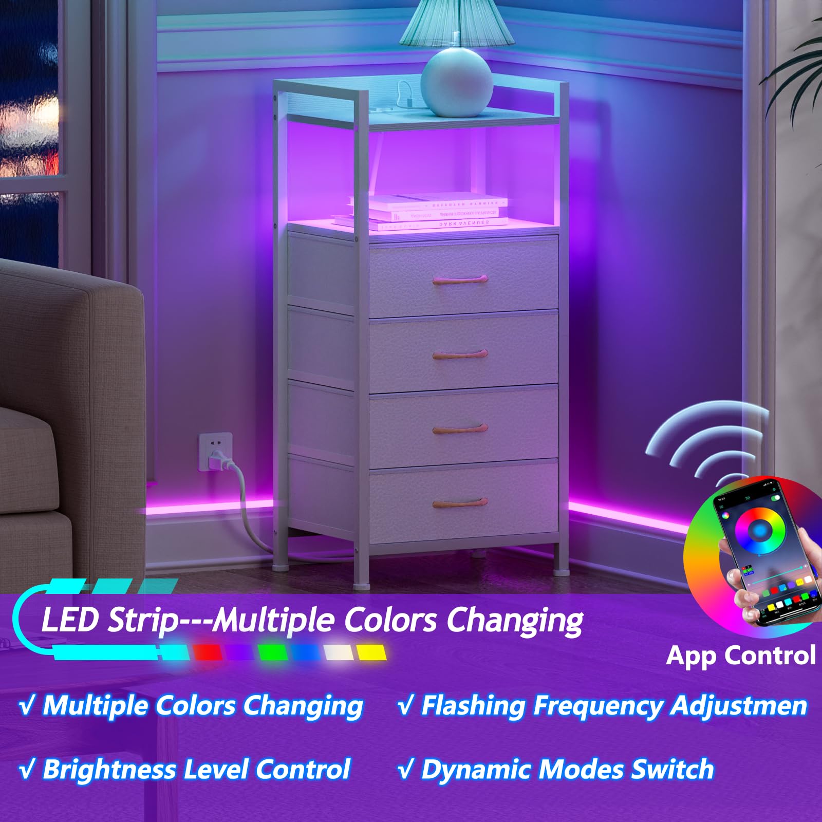 White Nightstand with 4 Storage Drawer, Tall Dresser for Bedroom