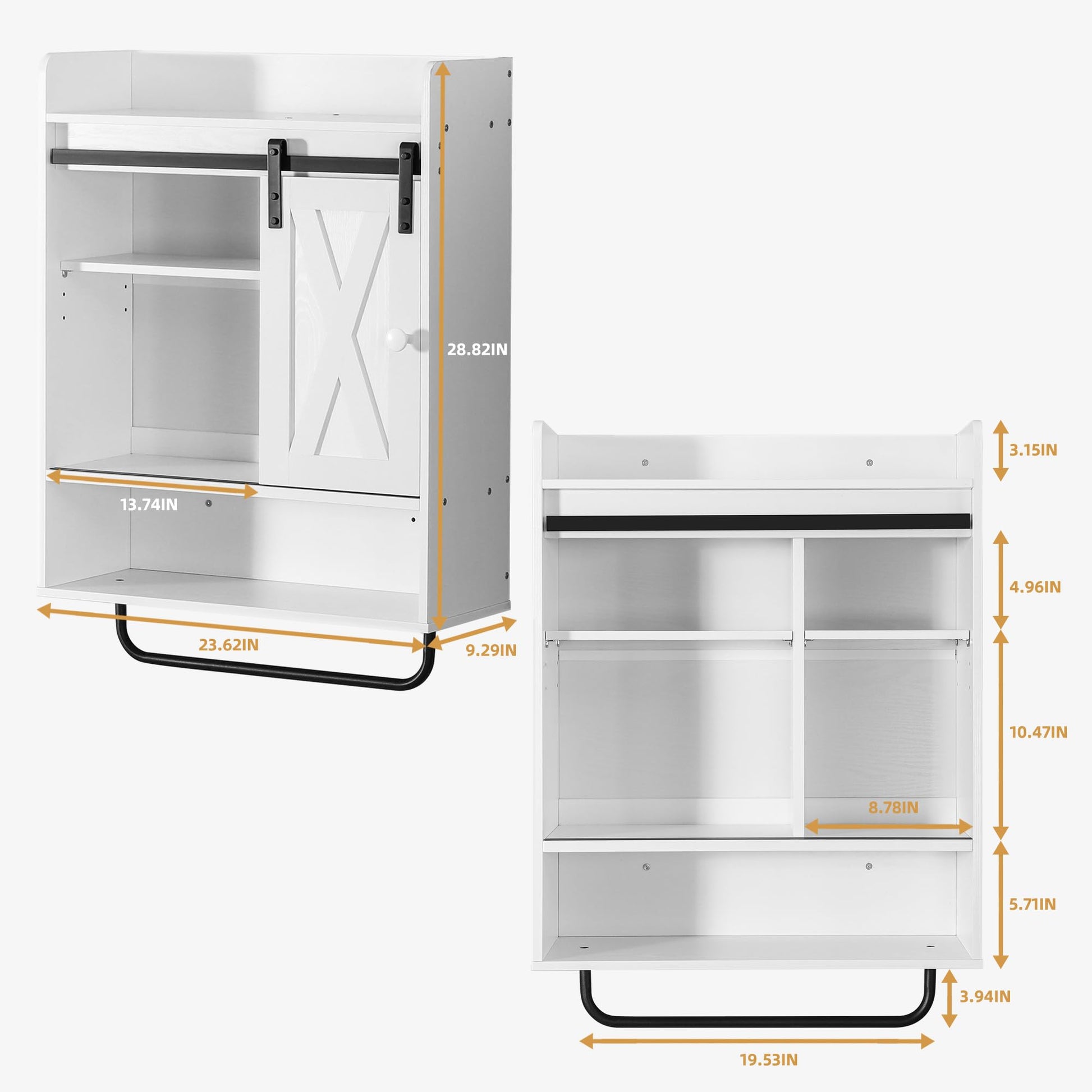 White Bathroom Cabinet with Towel Bar, Bathroom Medicine Cabinet with Sliding Barn