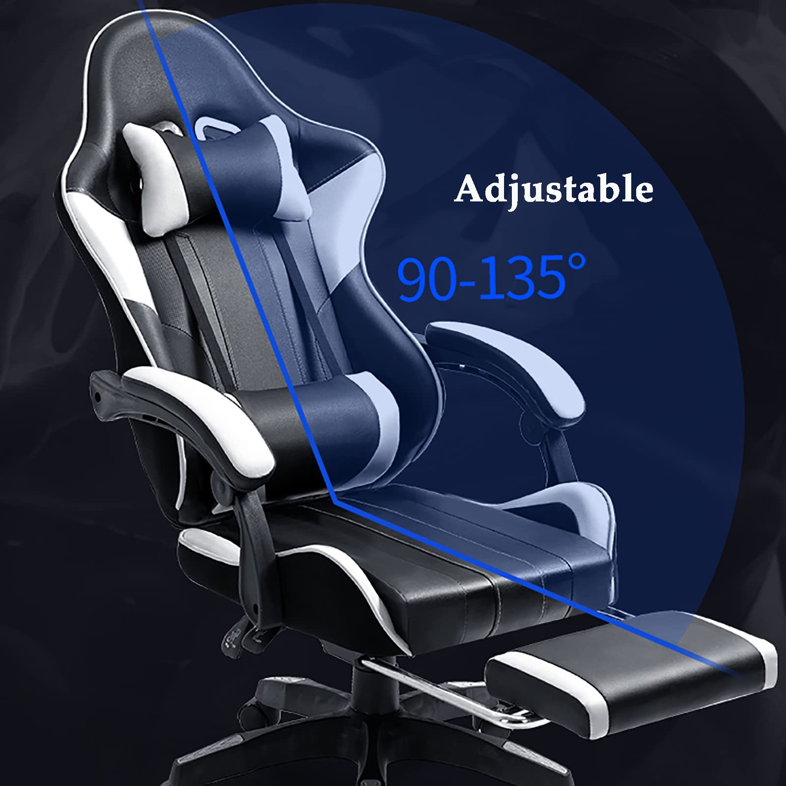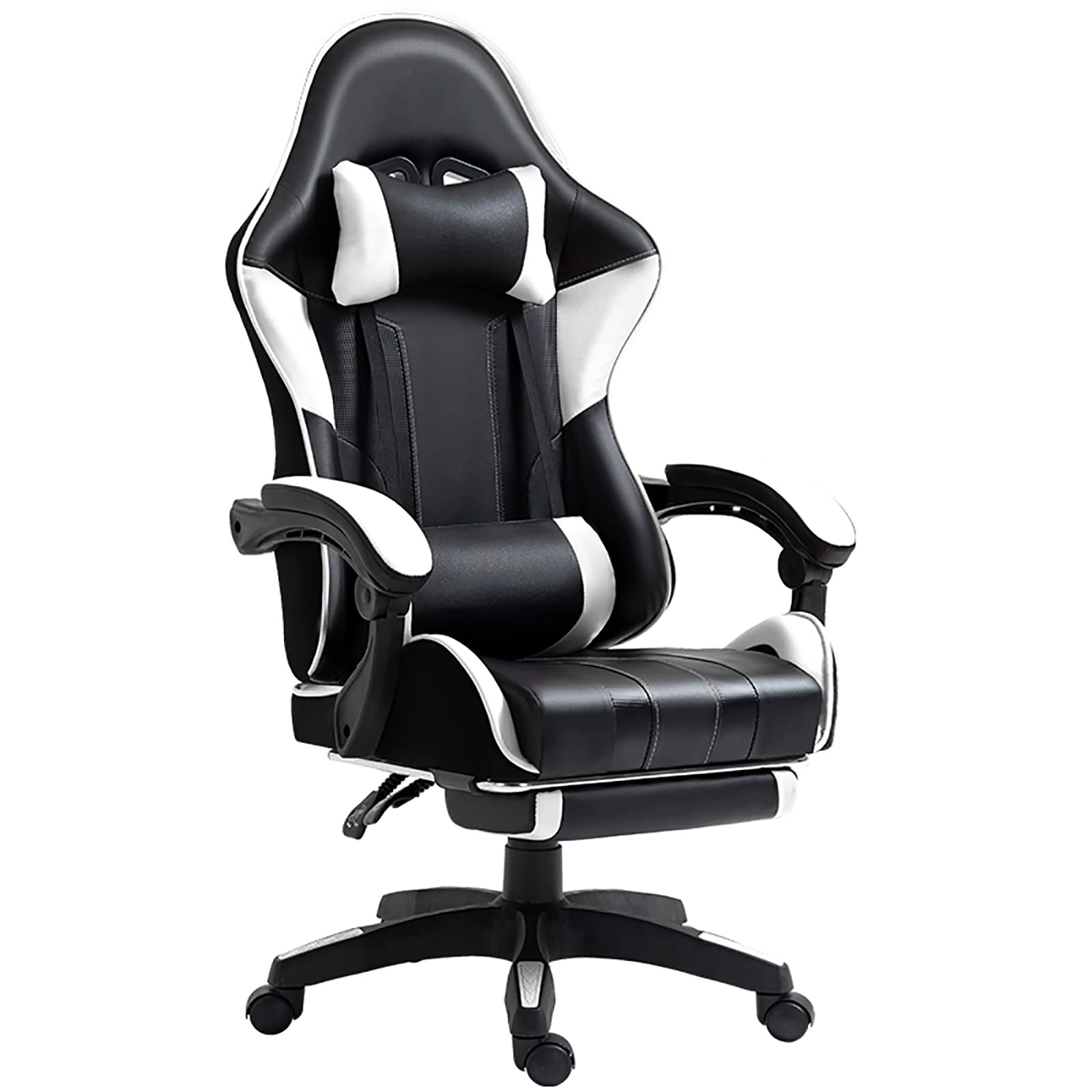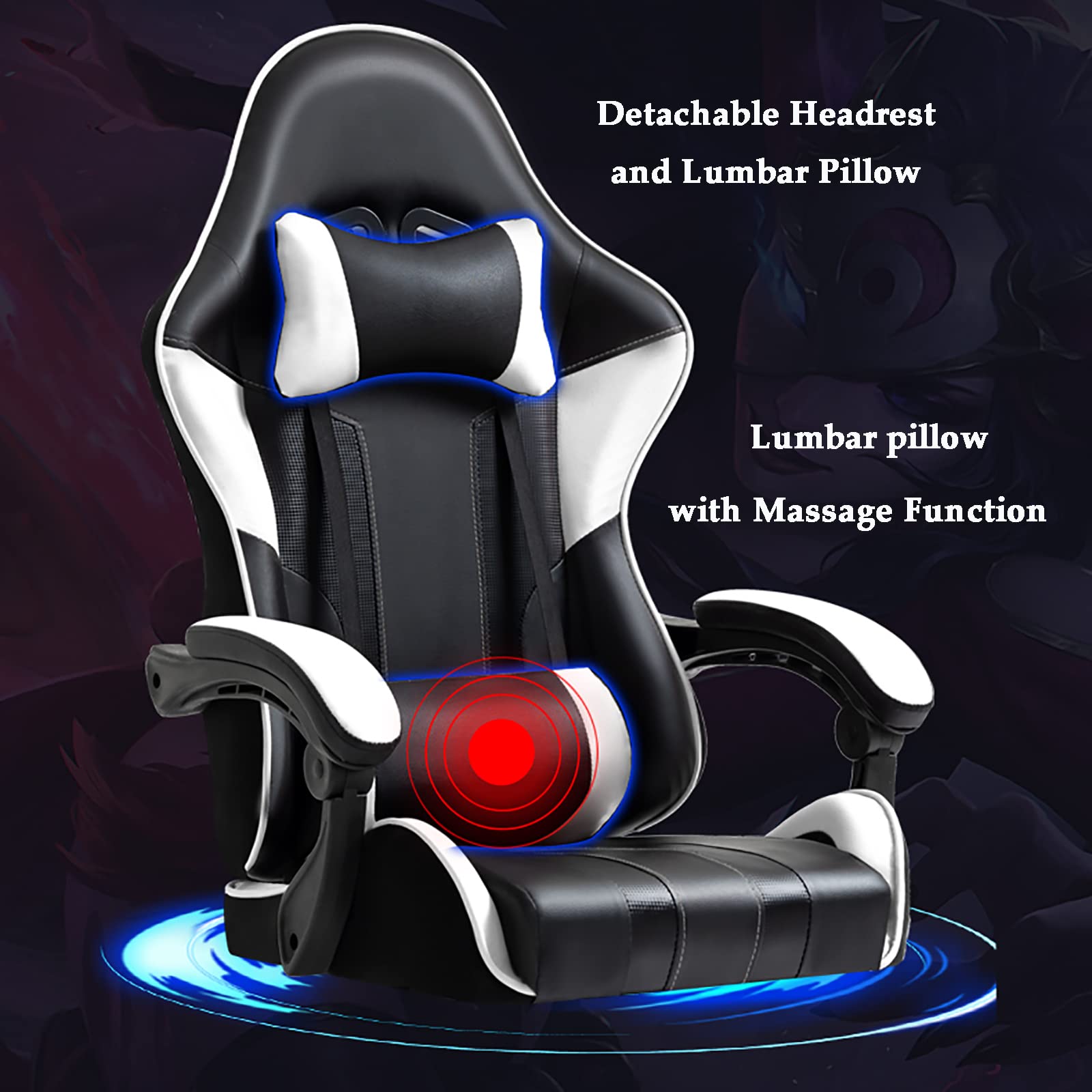 Gaming Chair with Footrest Massage Lumbar PillowAdjustableHeight