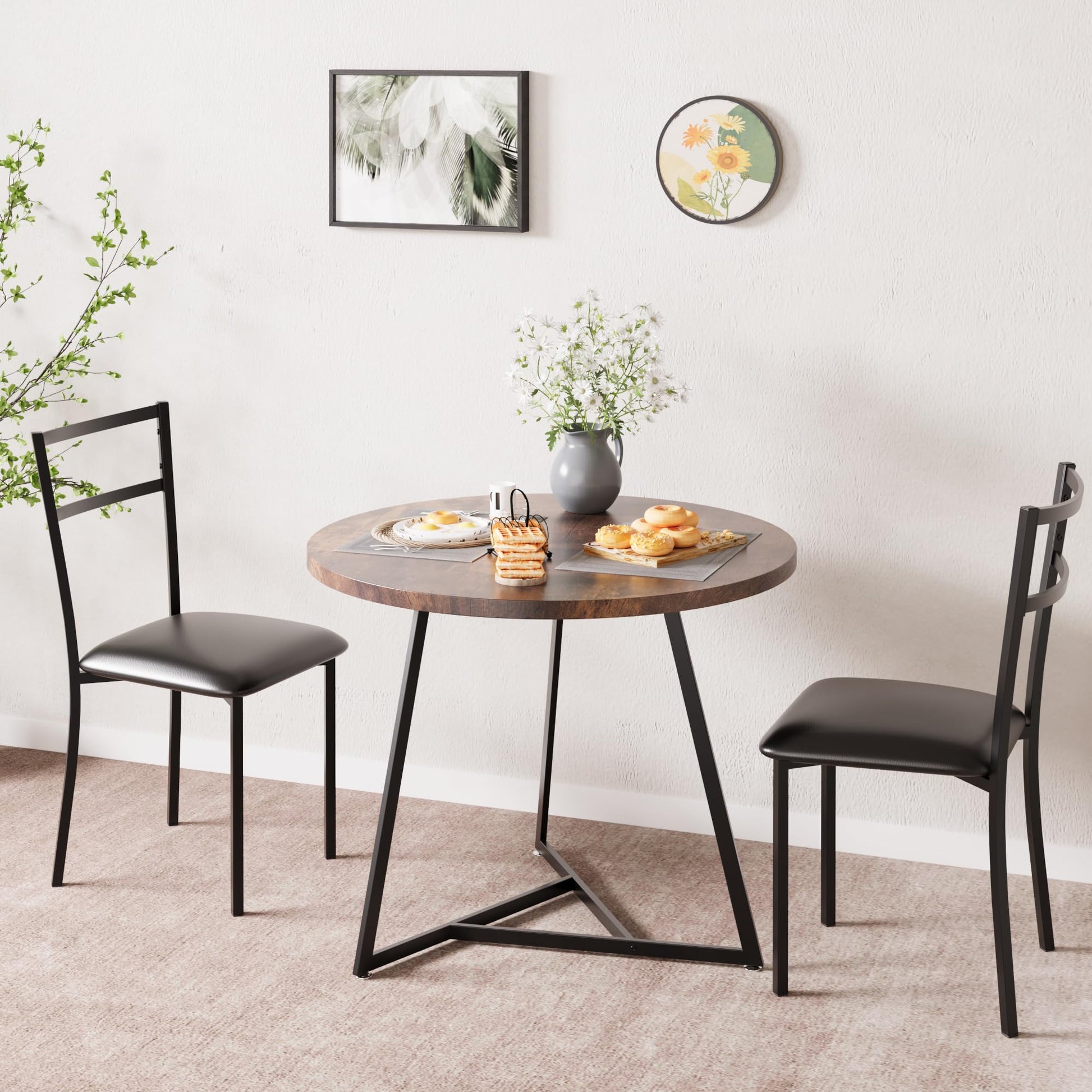GAOMON Round Dining Table Set for 2, Rustic Brown Kitchen Table Chairs Set of 2, Small Dining Room Table Set with 2 Upholstered Chairs, Dinette for Small Place,Apartment, Breakfast Nook