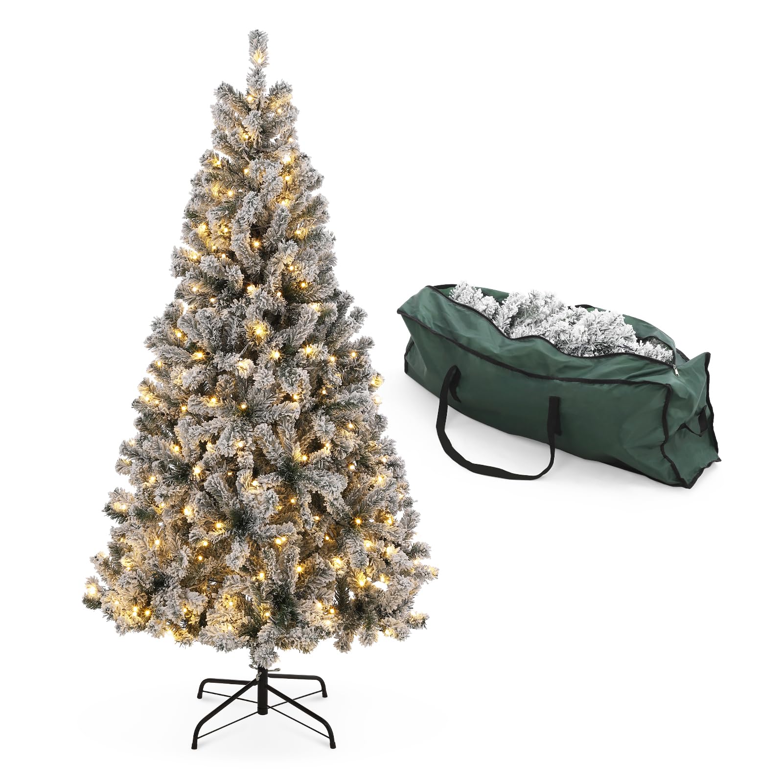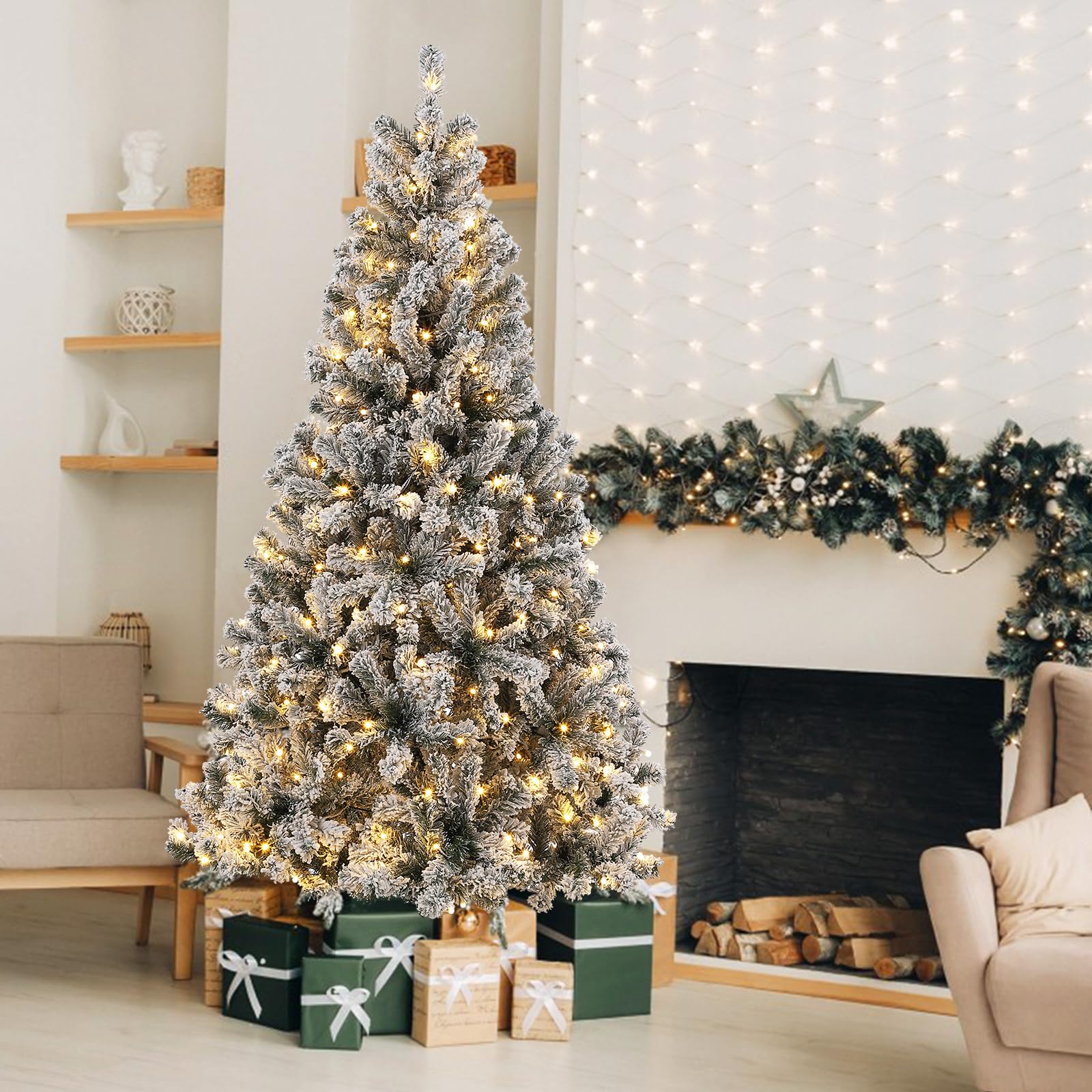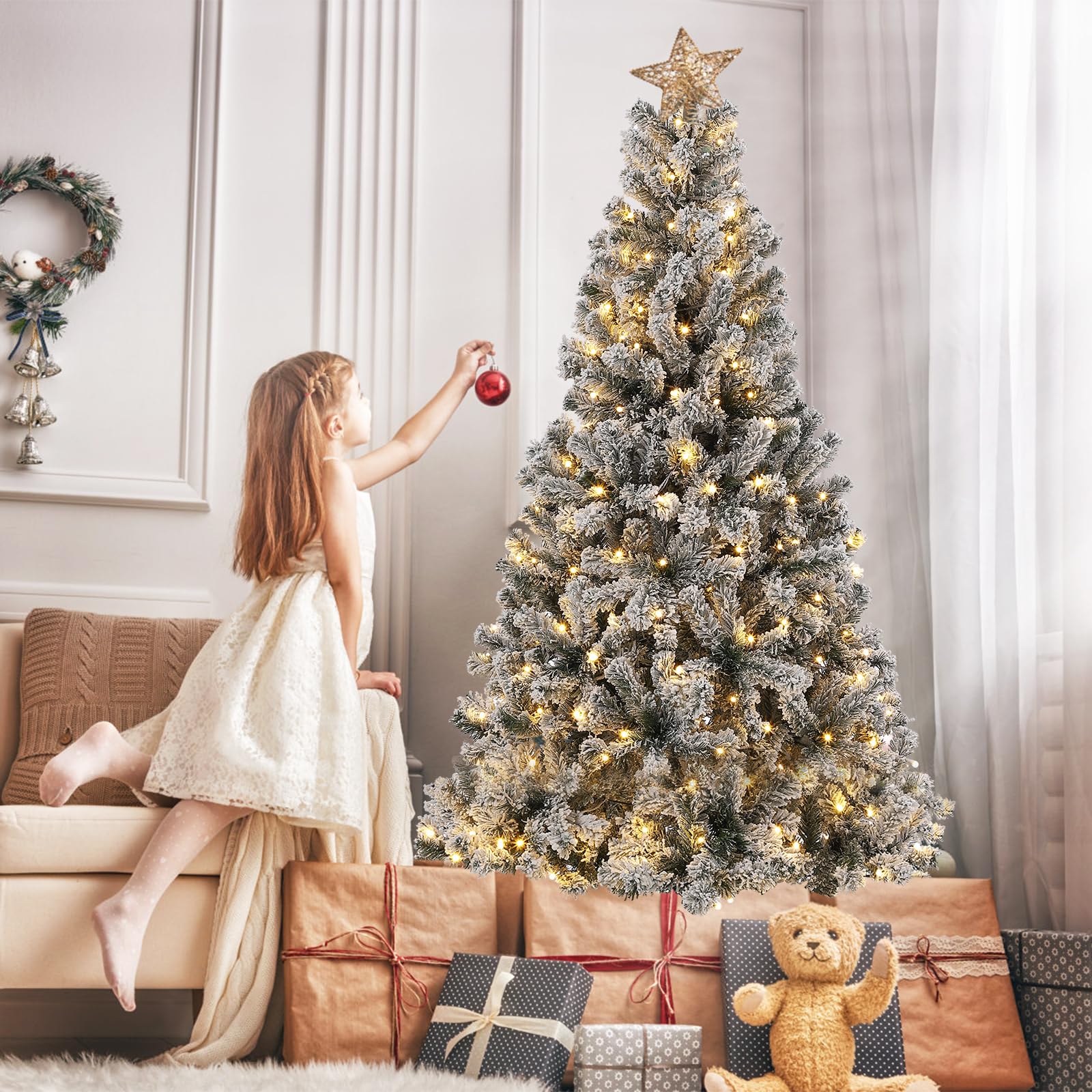 6FT Snow Flocked Christmas Tree, Pre-lit Artificial Xmas Tree with 640 Branches Tips