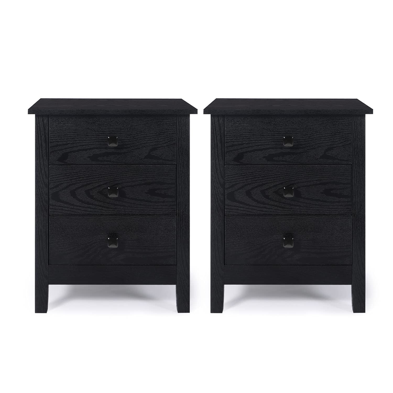 Bedroom Nightstands - Set of 2 Wooden Night Stands with 3 Drawers