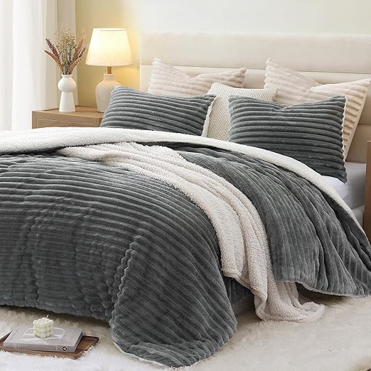 - Geniospin microplush sherpa fleece comforter set has a rib-knit texture for a subtle pop of style. The fine yarn in the front is used to add a layer of coziness to your bedroom with ultra softness.