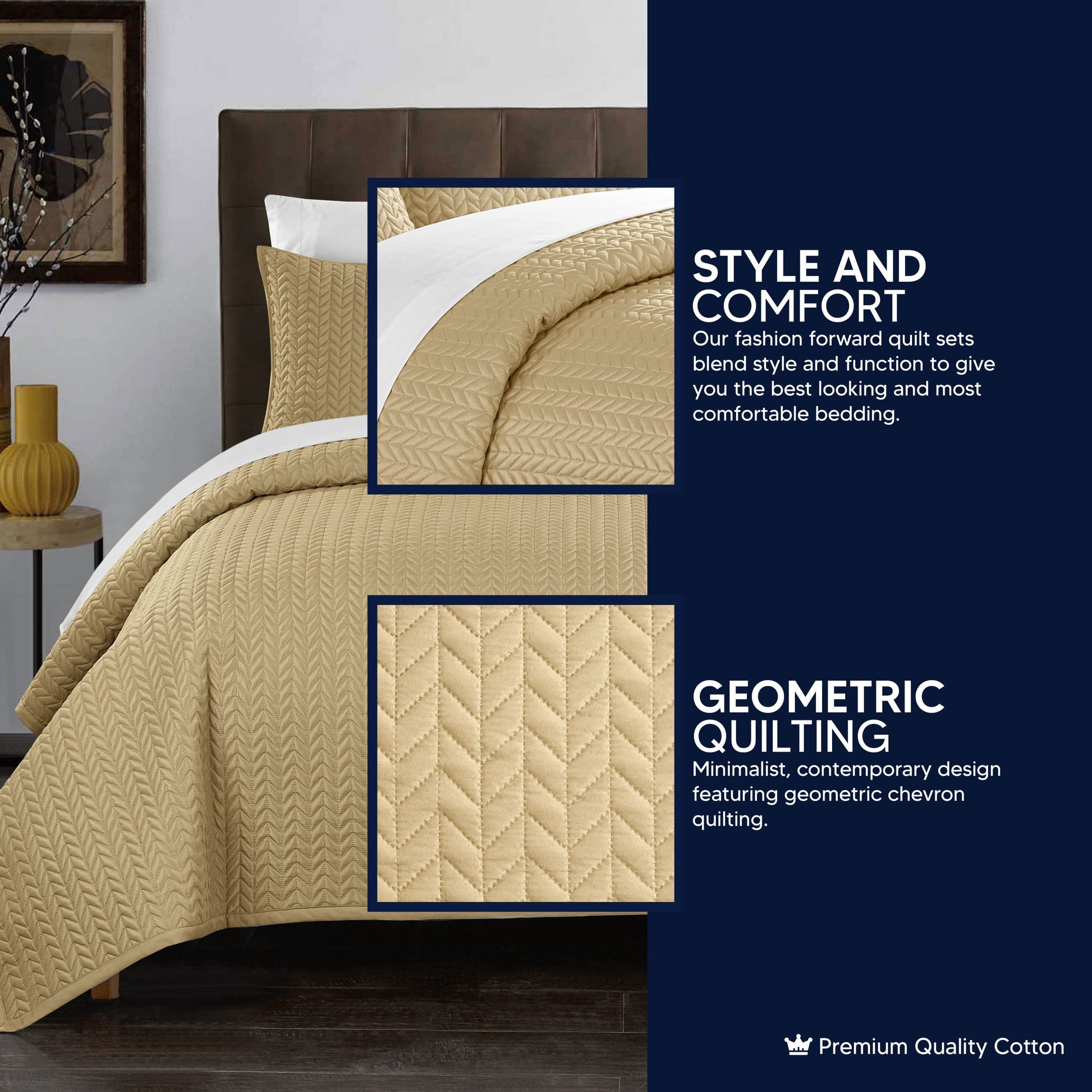 This complete bedding ensemble includes everything you need to transform your bedroom: one quilted coverlet and two matching decorative pillow shams. The geometric chevron design adds a bold, modern aesthetic that complements both minimalist and eclectic bedroom styles.