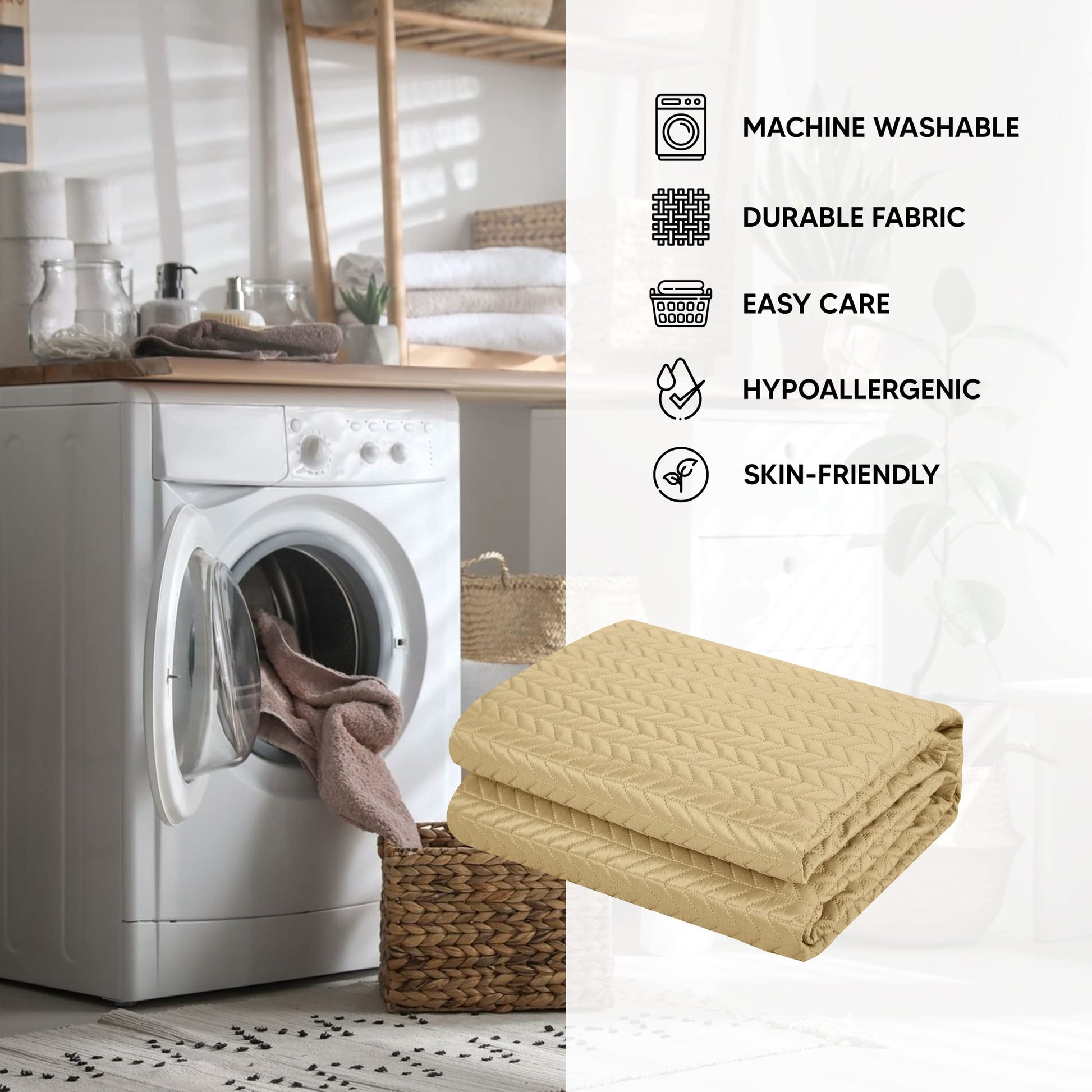 - Easy-care fabric that maintains its beauty wash after wash