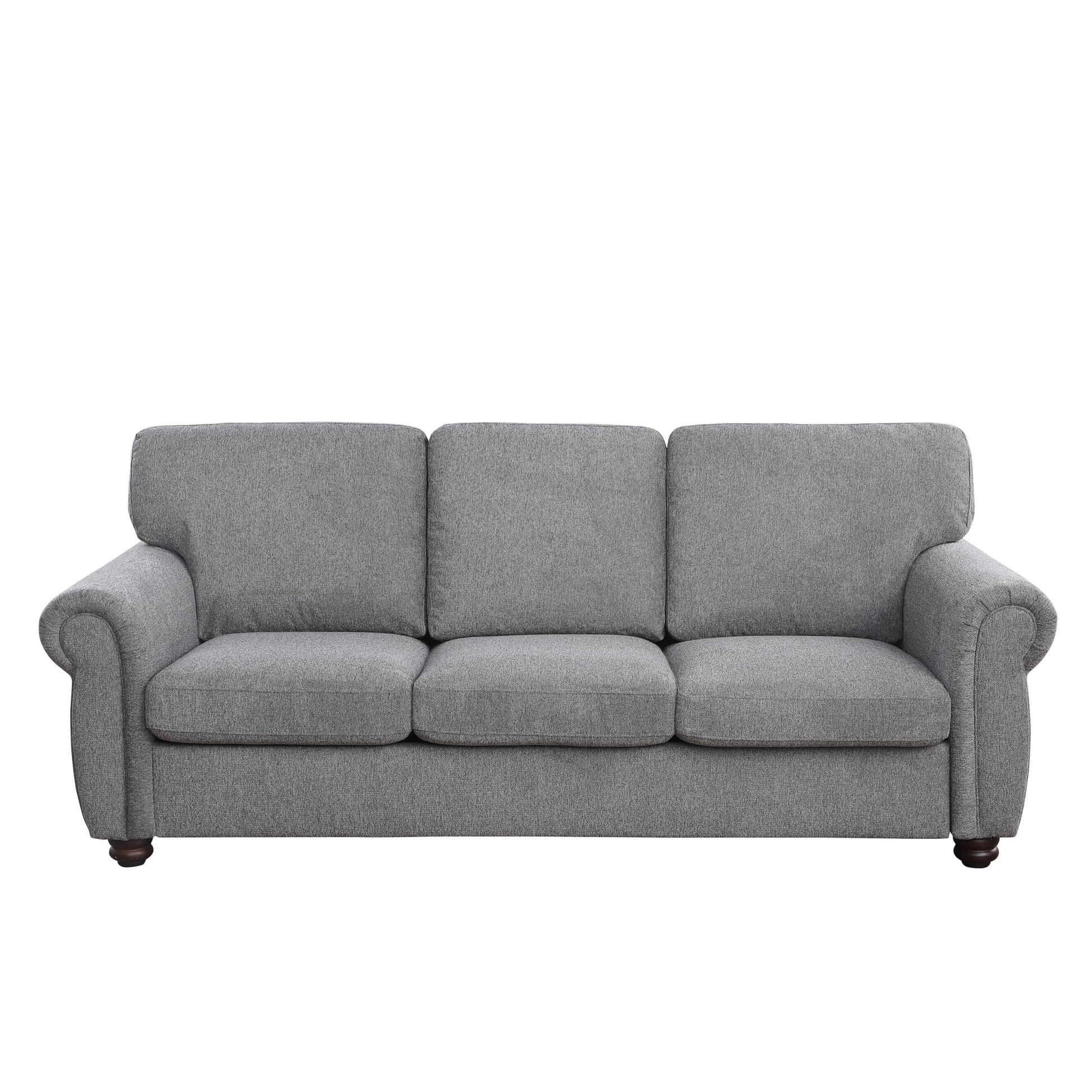 Furniture Home Series Mid-Century Modern 84.65'' Wide Fabric Chenille Couch 3-Seater Sofa with Solid Wood Frame and Brown Legs, Dark Gray
