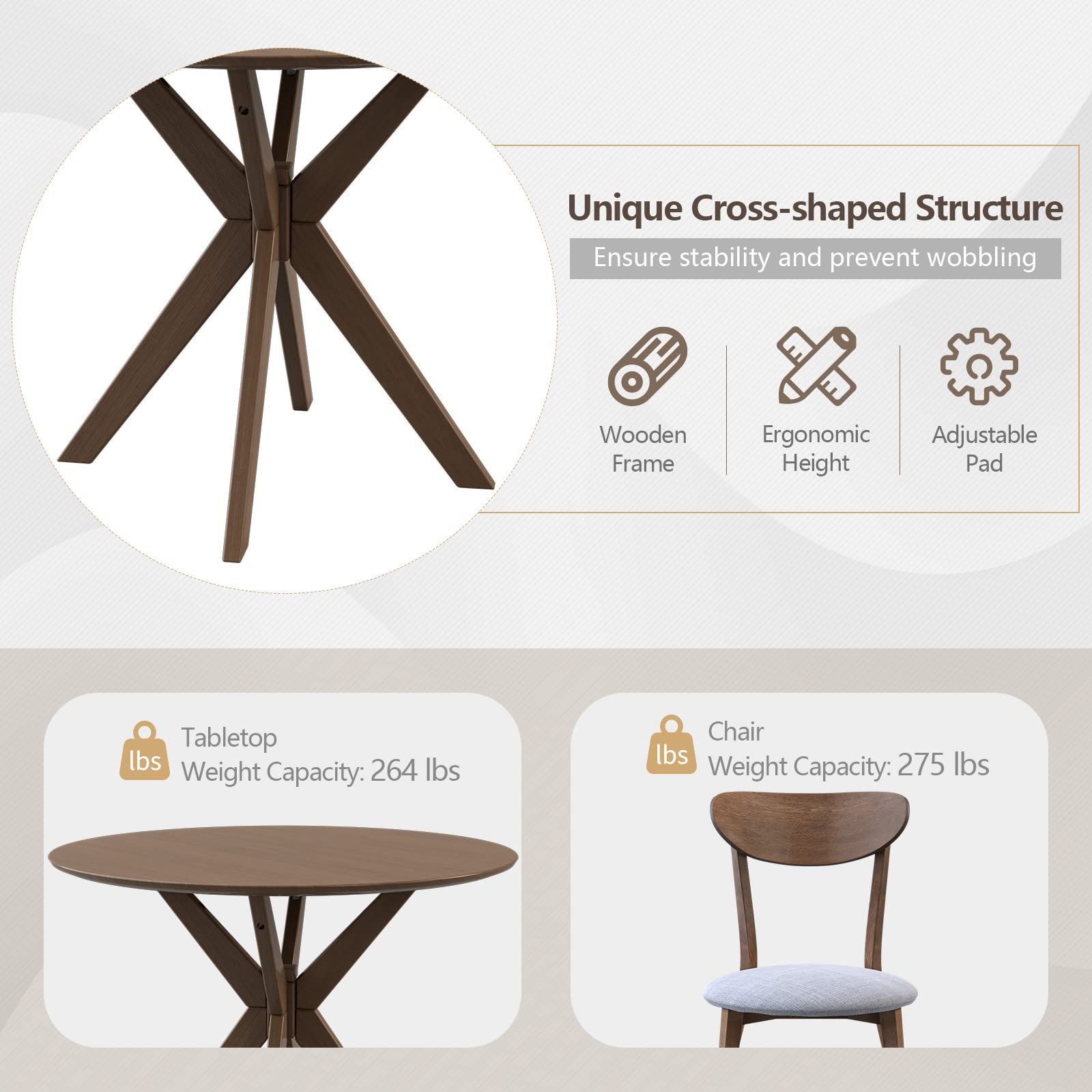 - This table features solid tabletop and adopts unique cross-typed legs to enhance the stability, which supports up to 264lbs. Moreover, the chair is crafted with solid rubber wood legs with two extra boards under the seat to bear a high weight of 275lbs.