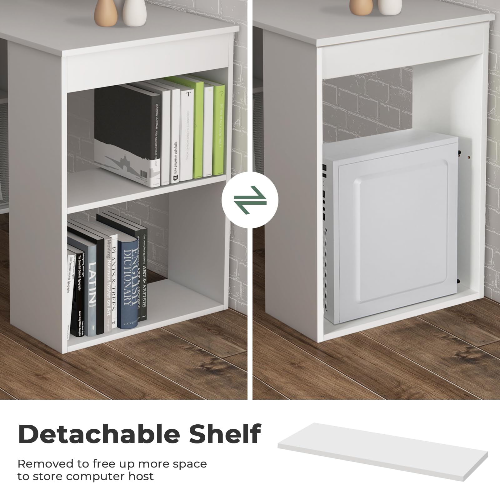 Giantex 48 Inch Computer Desk with Bookshelf, 3-in-1 Home Office Desk with 4-Tier Bookcase & CPU Stand, Space-Saving Reversible Writing Desk Work Table for Bedroom, Study Room, Office (White)