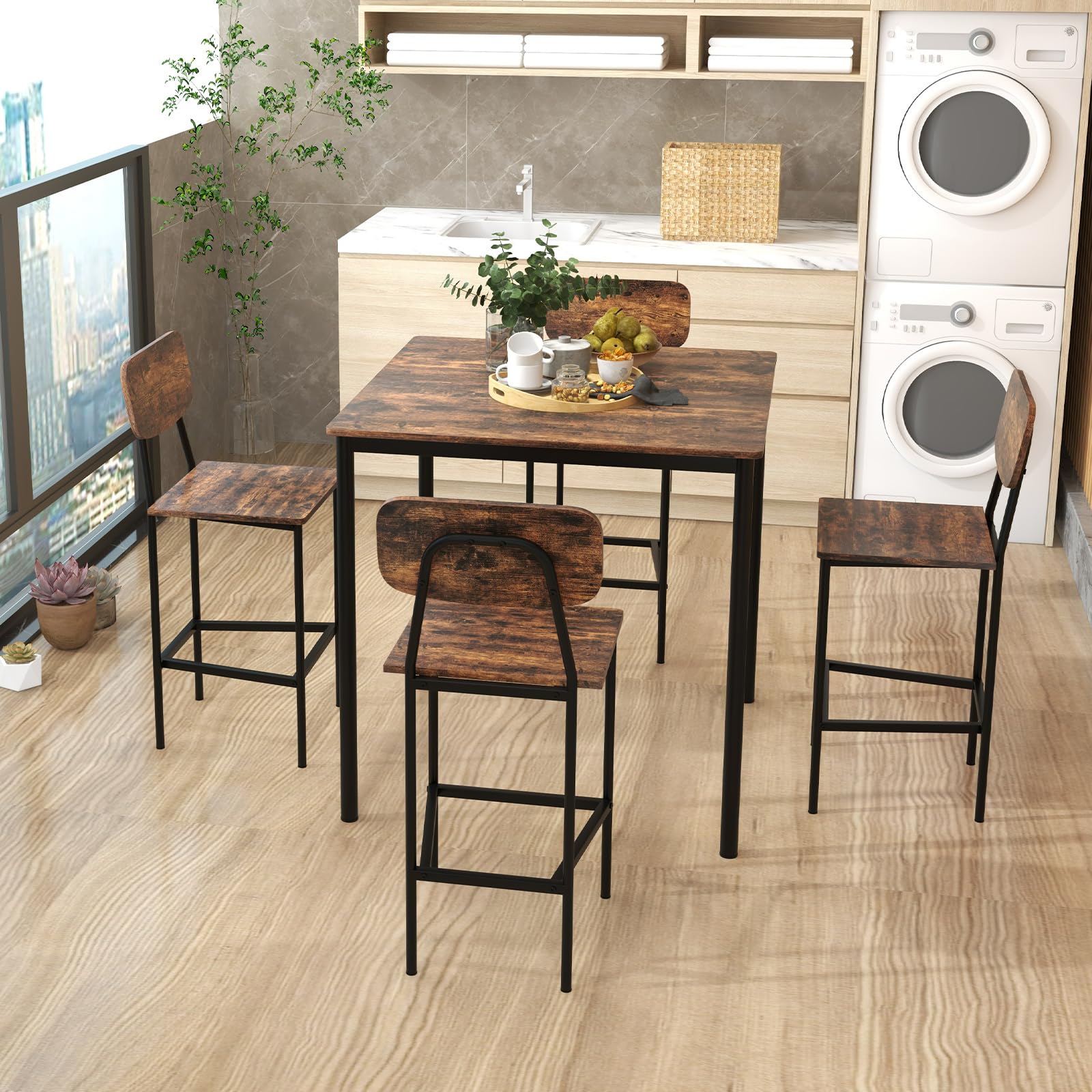 - 5-Piece Counter Height Dining Table Set: The dining table set features a counter height dining table and 4 bar stools, allowing you to enjoy delightful dining or drinking time with family or friends. In addition, with the clean lines and delicate wood grain finish, the industrial table set can perfectly blend into any room decoration.