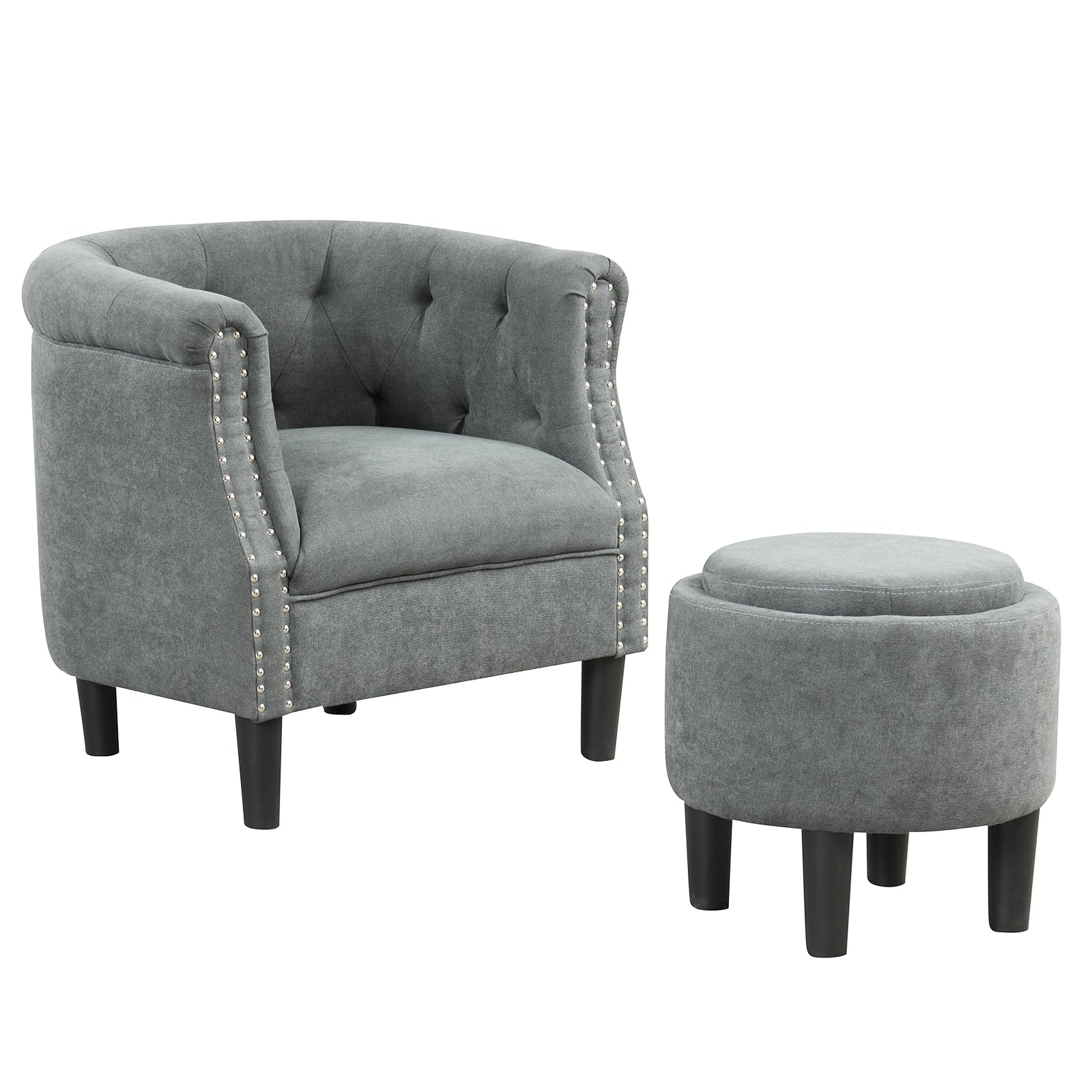 Accent Chair with Ottoman Set - Mid Century Modern Barrel Sofa Chair with Footrest