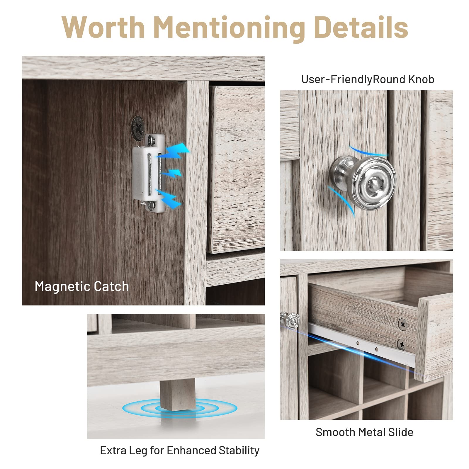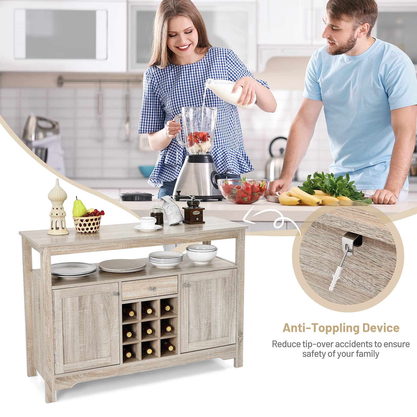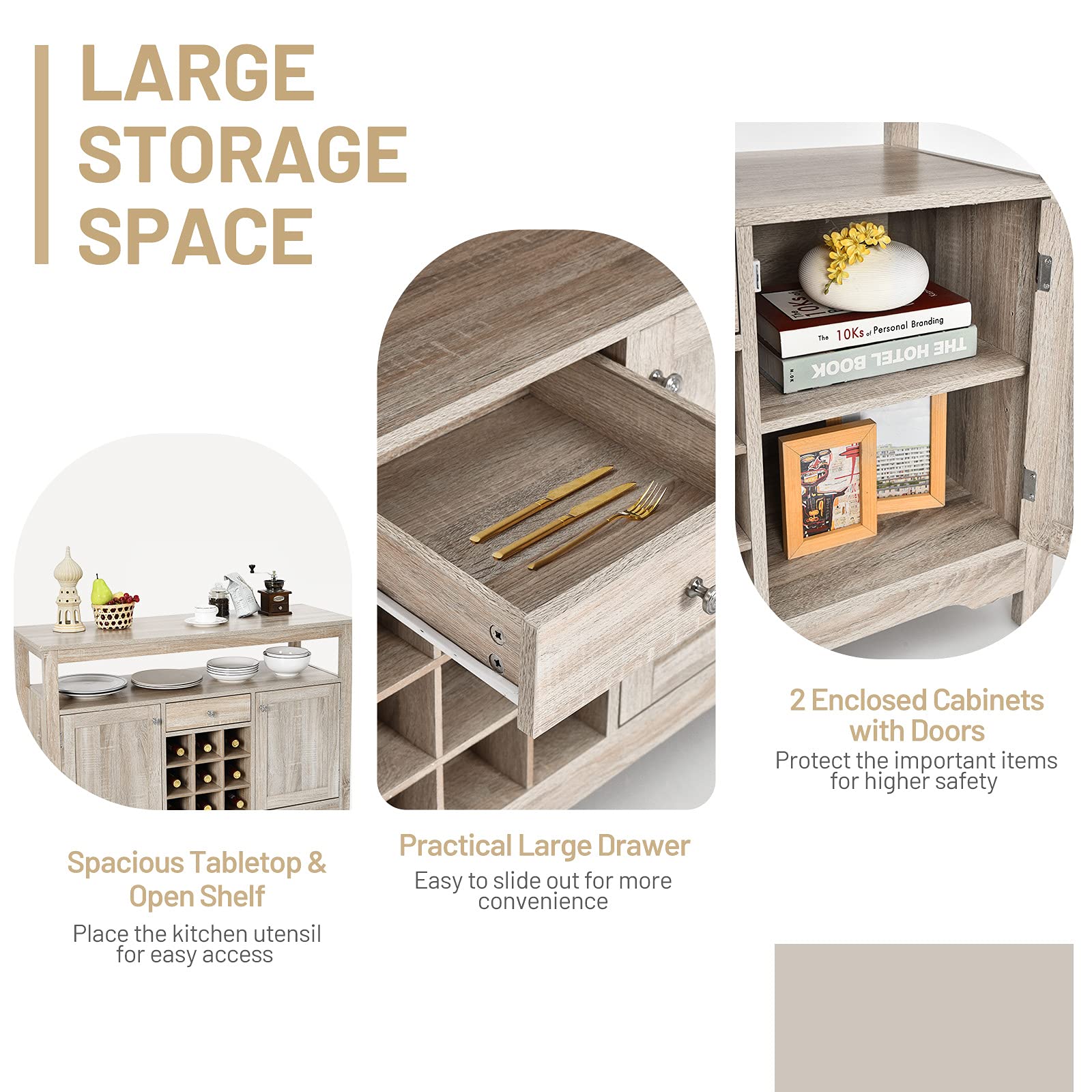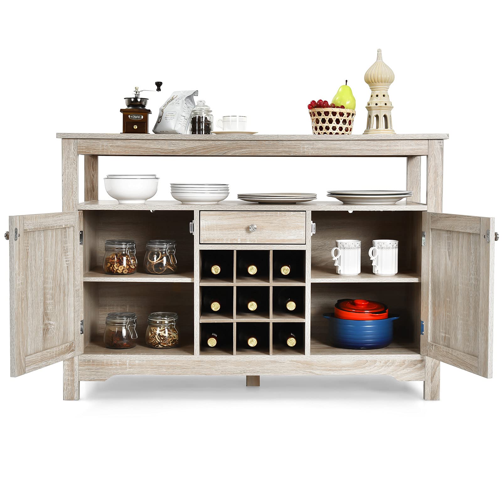 - Whether placed in kitchen, living room or restaurant, the buffet sideboard with retro looking and natural texture will add unique attractiveness and match with most of home decoration. Buffet server console table will satisfy your different requirements in different occasions.
