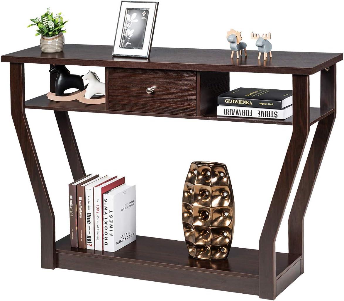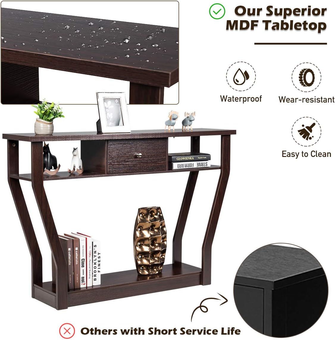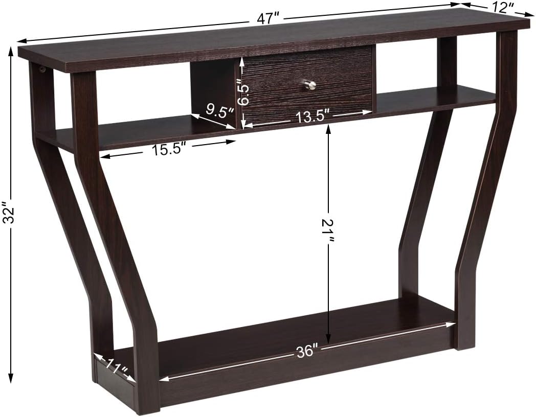 Console Table Modern Easy Assembly Entryway Table W/Storage Drawer and Bottom Shelf