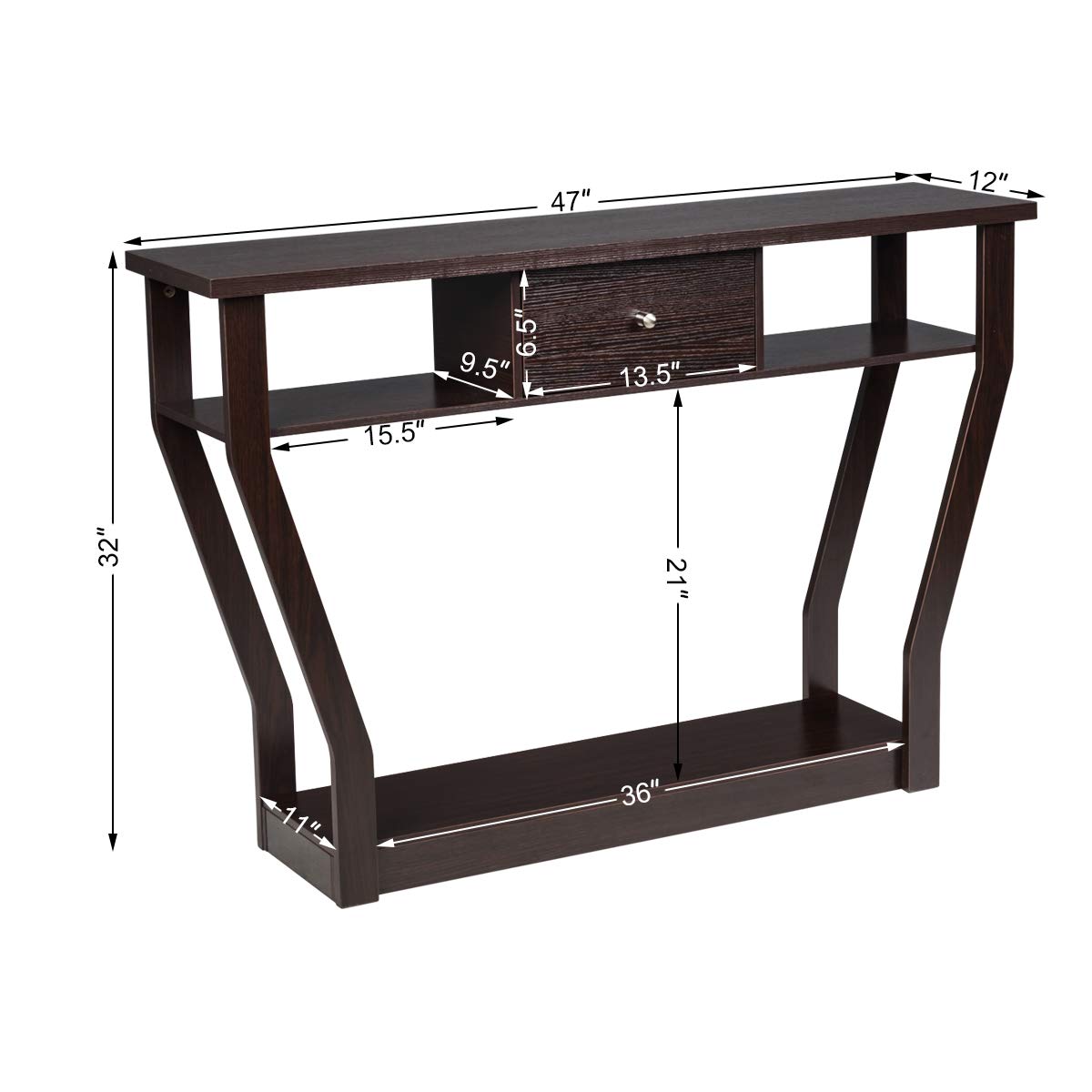 - With the large storage space and concise design, the console table can be wildly used to meet your needs. And the classical and accent outlook make the table fit any home decor. You can use the table in the entryway or hallway as a decorative table or console table. It also can be used as a sofa side table in the living room.