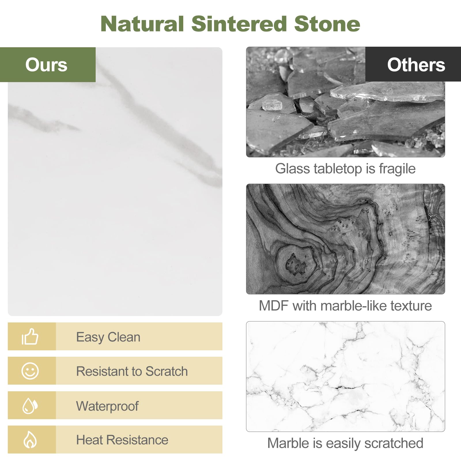 - Elevate your space with our modern side table, featuring a white sintered stone top that adds sophistication to any room. The elegant round shape and gold-colored metal frame effortlessly blend style with functionality, making it a captivating piece to brighten your surroundings.