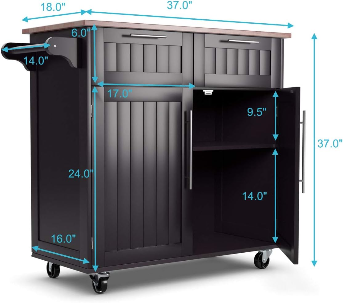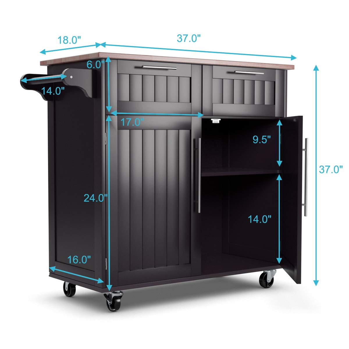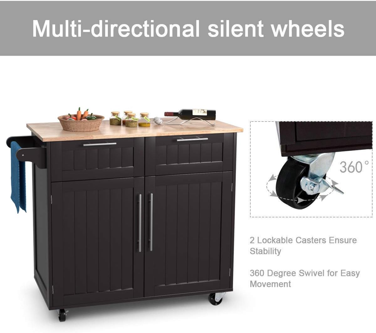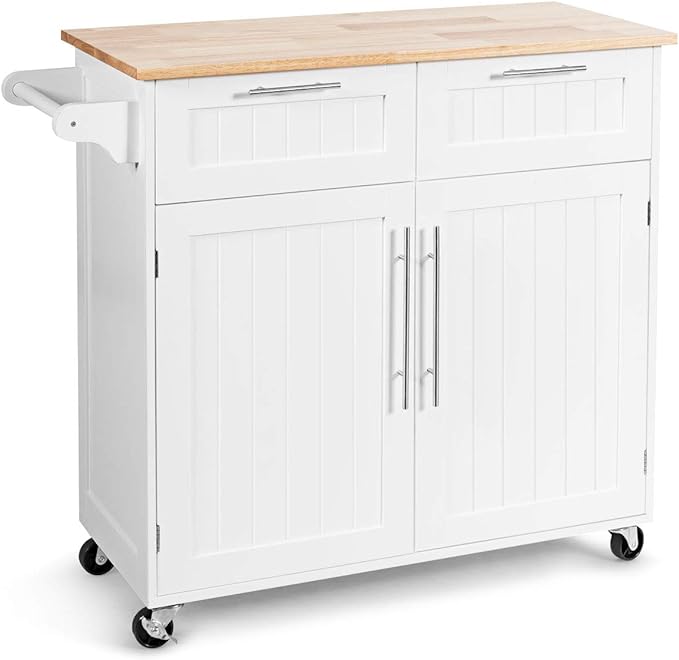 - Sufficient Storage Space & Towel Rack: The well-organized kitchen trolley is stylish and versatile and is equipped with two utility drawers and double doors. The design of the kitchen island cart is simple but practical.