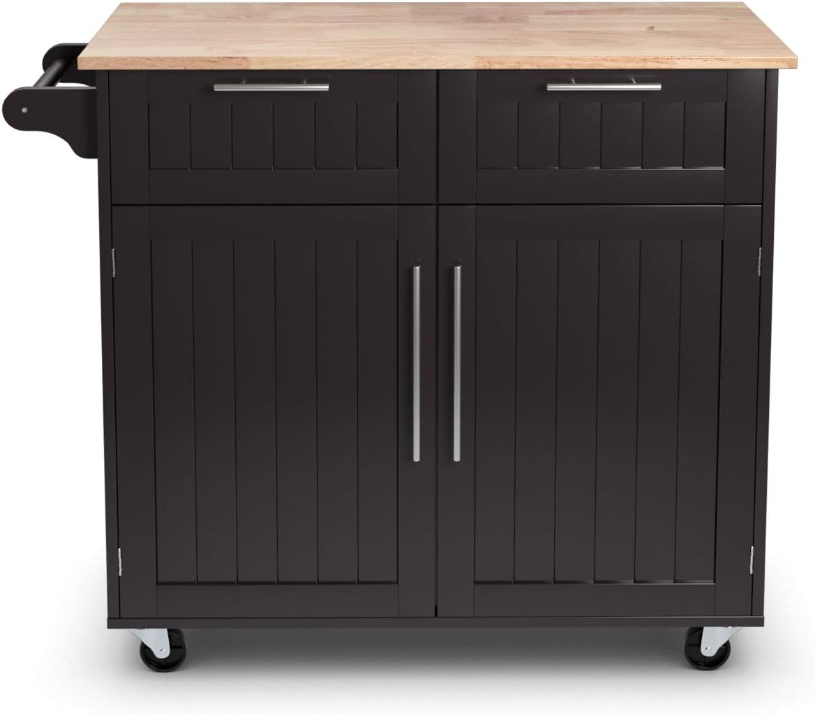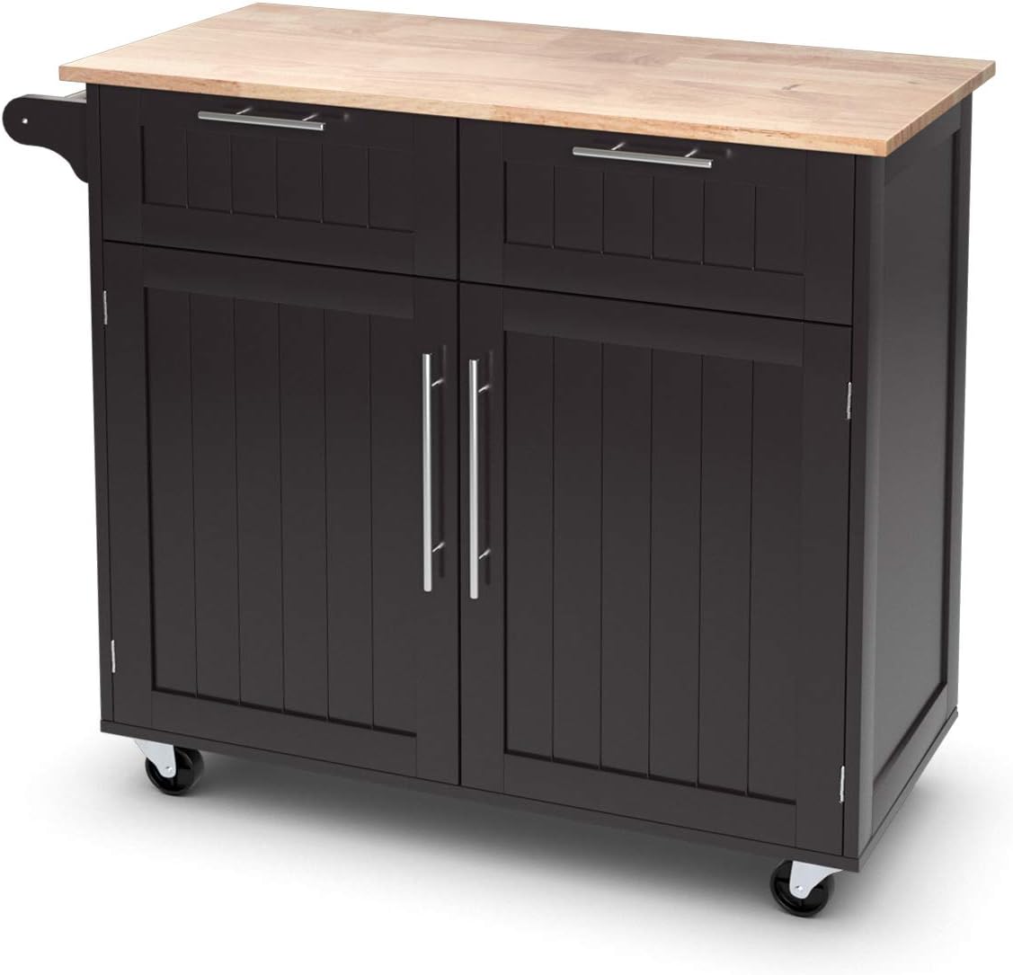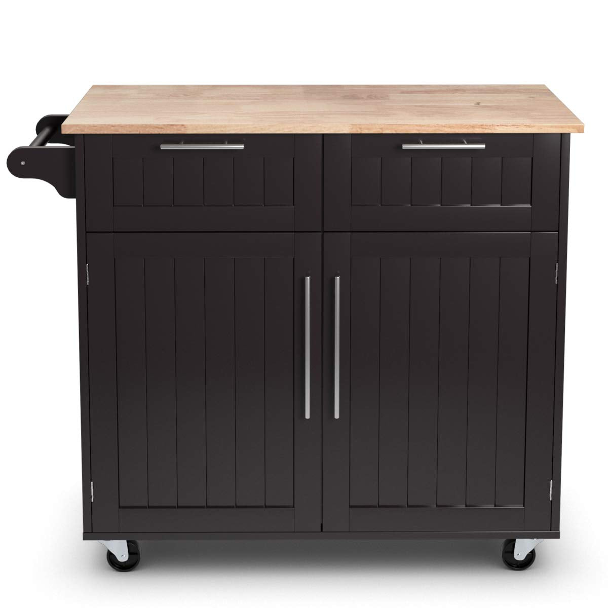 - Sufficient Storage Space & Towel Rack: The well-organized kitchen trolley is stylish and versatile and is equipped with two utility drawers and double doors. The design of the kitchen island cart is simple but practical.