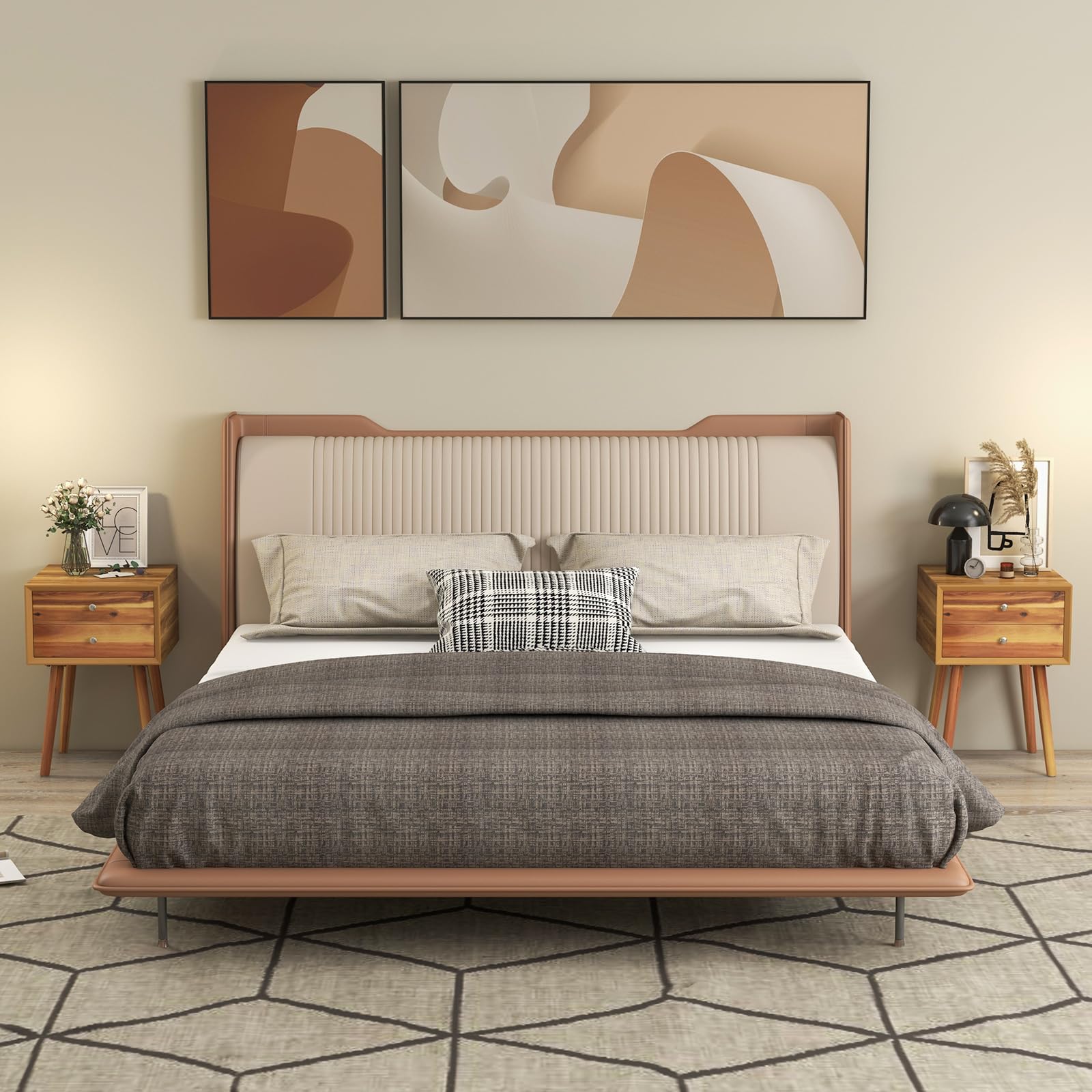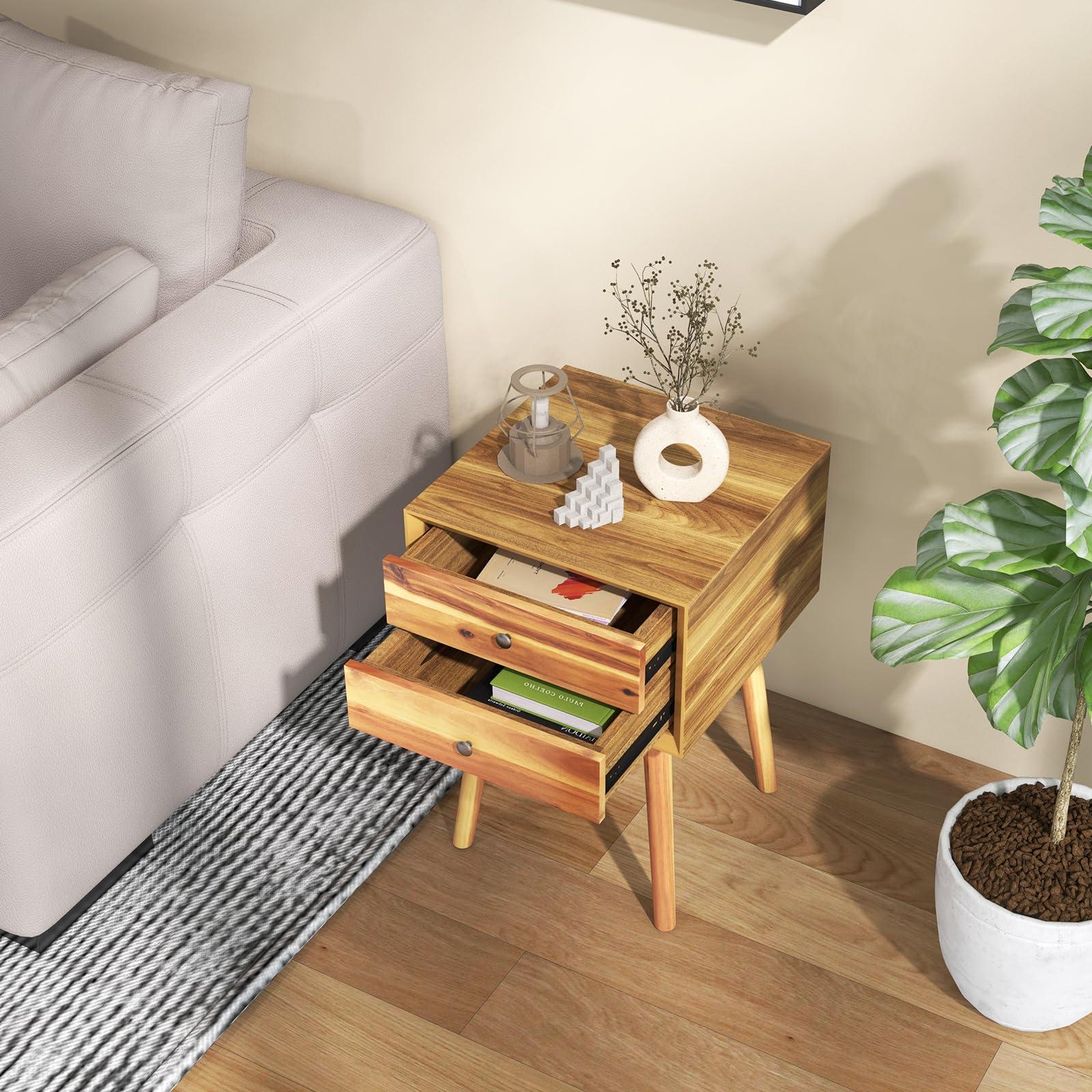 Nightstand with 2 Drawers Set of 2, Mid Century Modern Bedside Table with Solid Wood