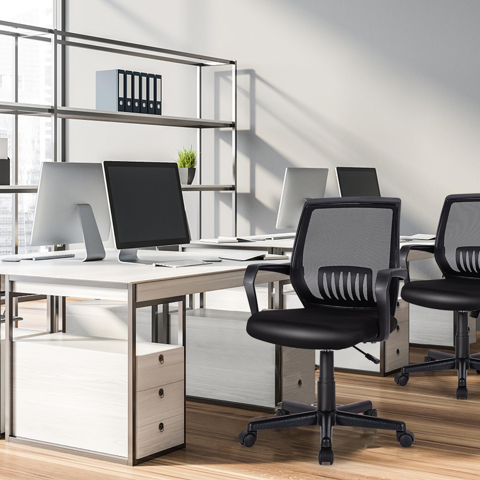 Mesh Desk Chairs with Wheels, Lumbar Support, Waterfall Seat, Height Adjustable Armrest Computer Chair, Mid Back Executive Swivel Task Chair for Women Adults, Black