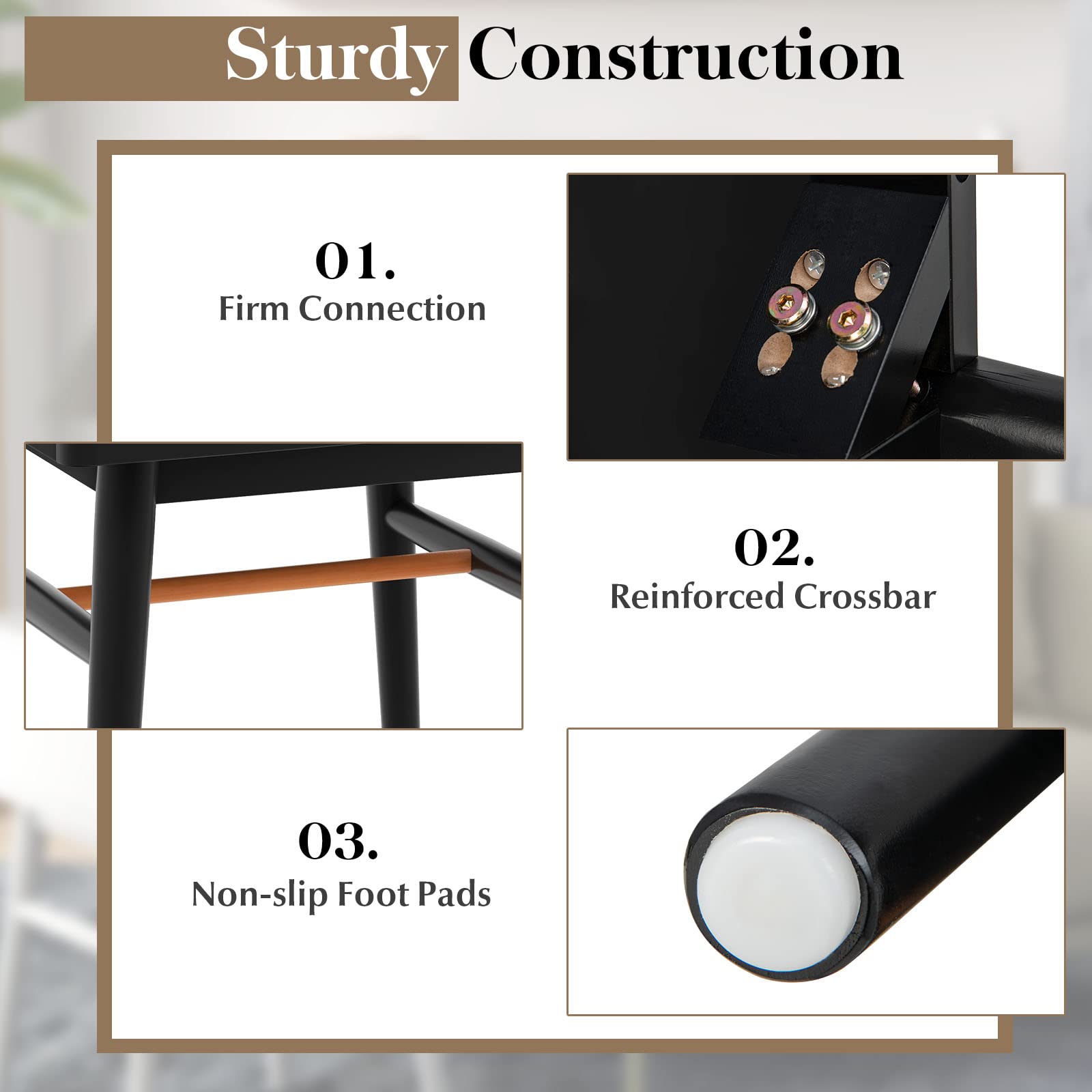 - The end table legs are made of solid wood, which boasts excellent durability and large weight capacity. Moreover, the reinforced crossbar and non-slip foot pads also help to enhance the overall stability of the sofa side table.