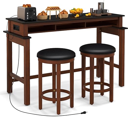 Small Dining Table Set for 2 - Bar Table and 2 Bar Stools, Sofa Table with Outlets