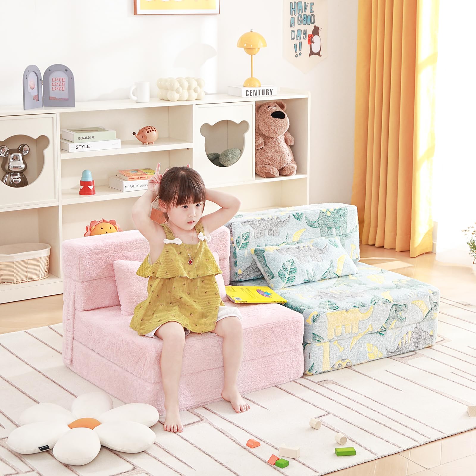Folding Sofa Bed Floor Mattress for Kids with Pillow, Toddler Washable Folding Floor Nap Mat for Sleeping Daycare