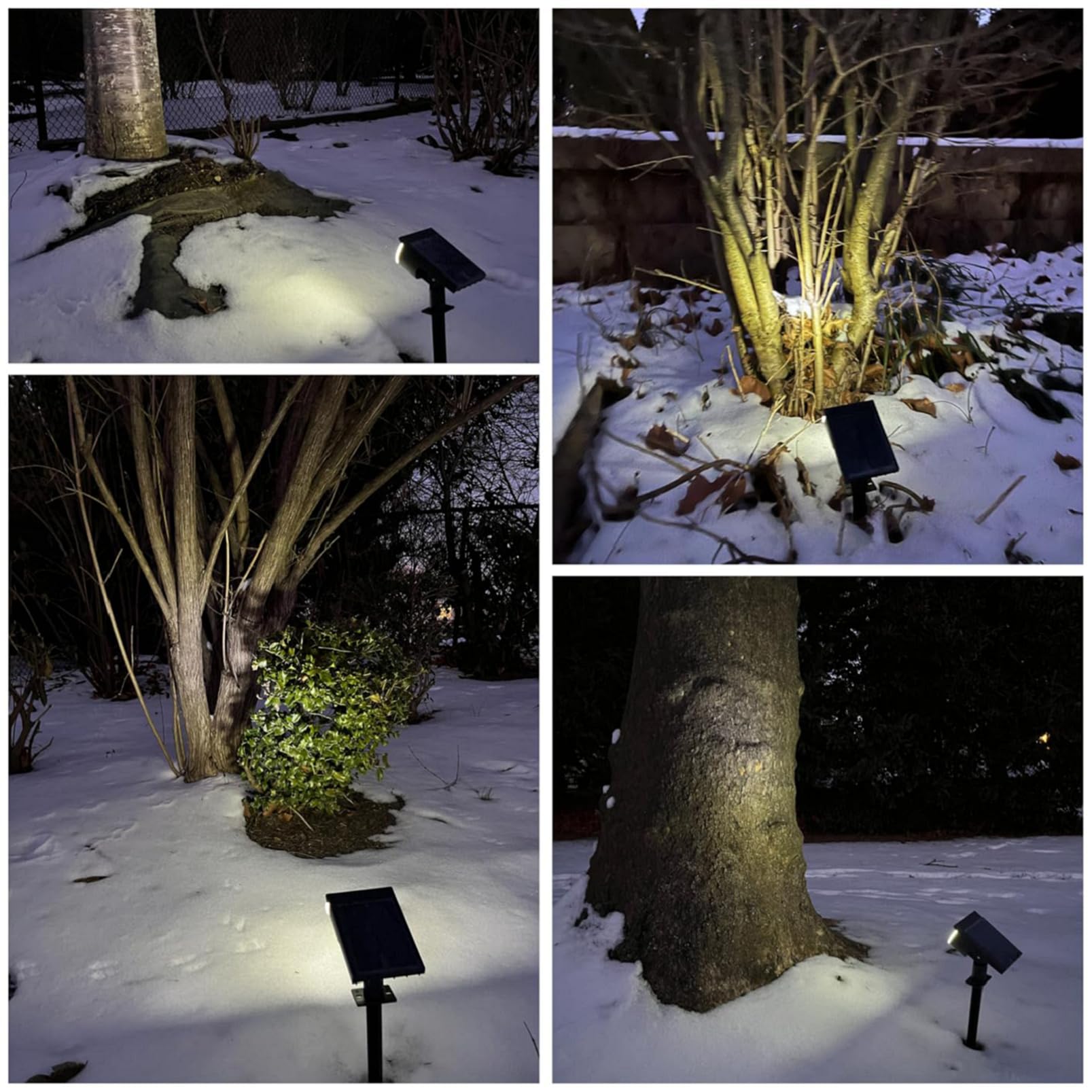- 3-Level Adjustable Solar Spot Lights Outdoor: GKGG solar landscape lights outdoor combines intelligence and efficiency in one, allowing you to easily switch between three lights modes with just one button - Low lights mode(20 hrs)/Medium lights mode(10 hrs)/High lights mode(6 hrs). The solar panel can automatically determine whether it is day or night. Automatic switching of charging and lighting modes.