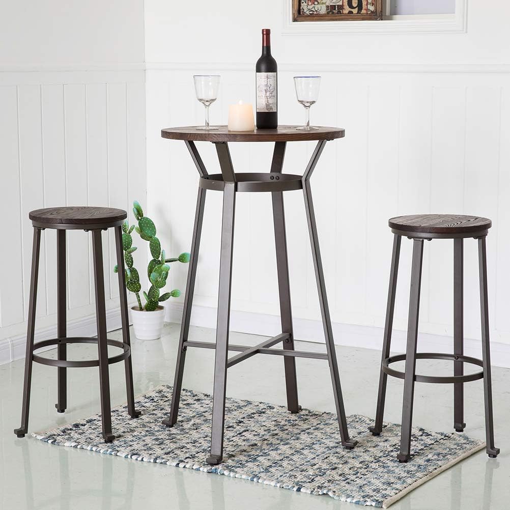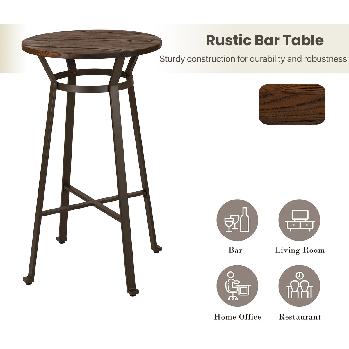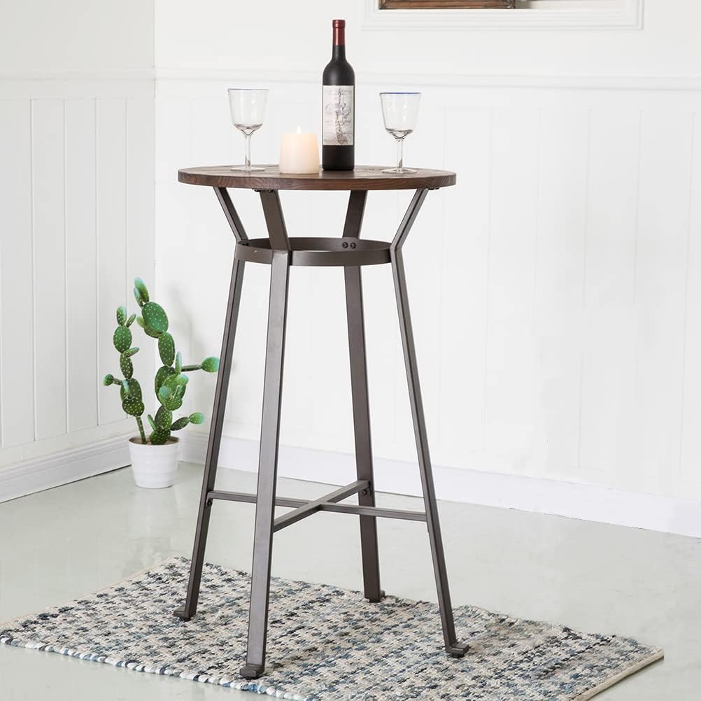 - ROUND COUNTER HEIGHT DINING TABLE: With rustic and industrial, this bar height dining table is the perfect thing in any dining room, kitchen area, breakfast room, or pub area.