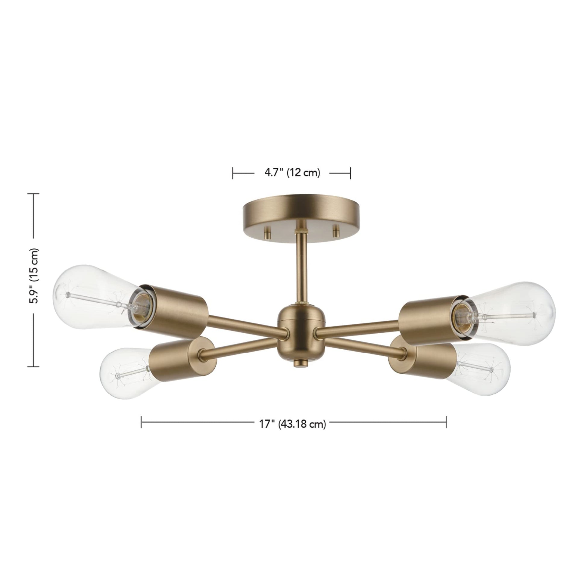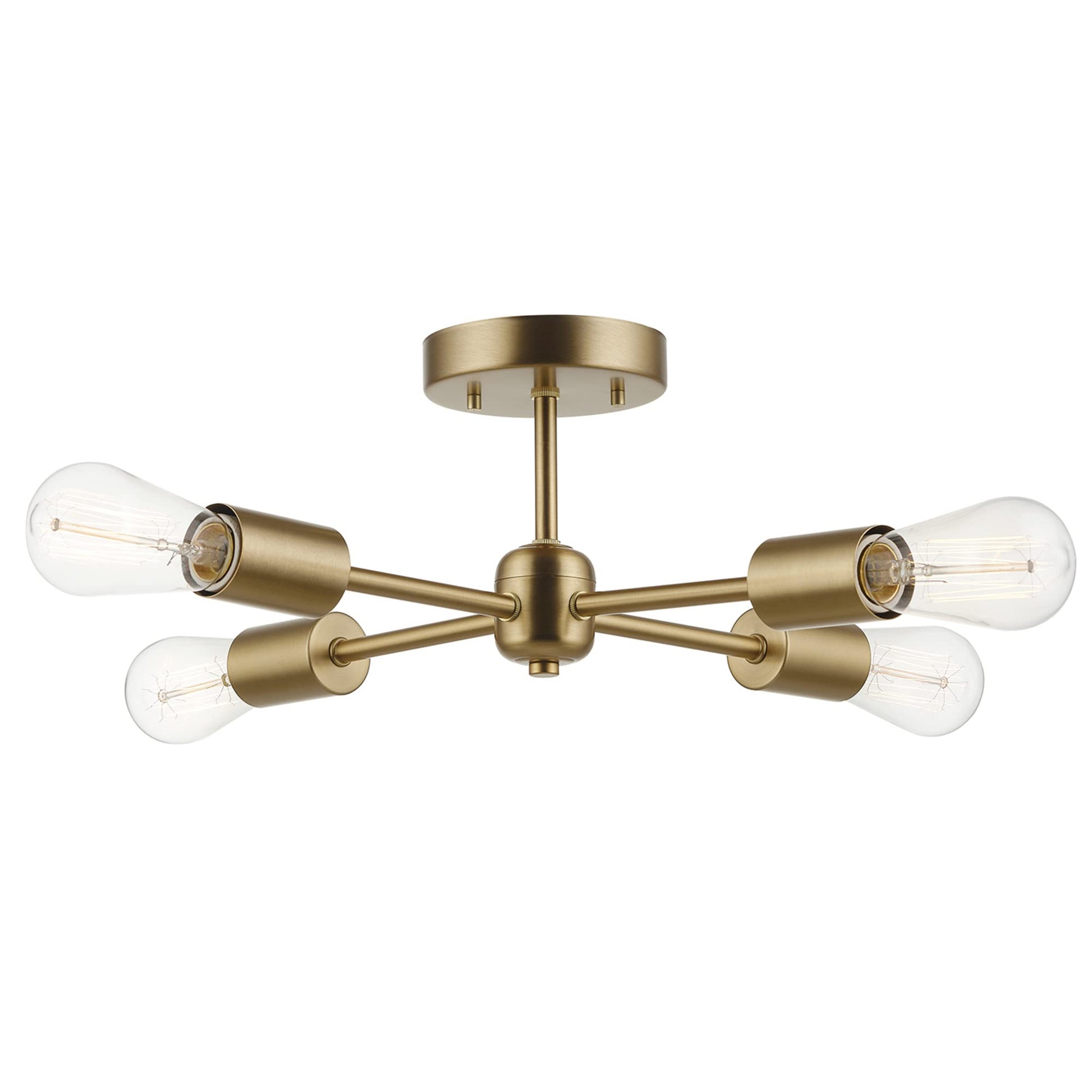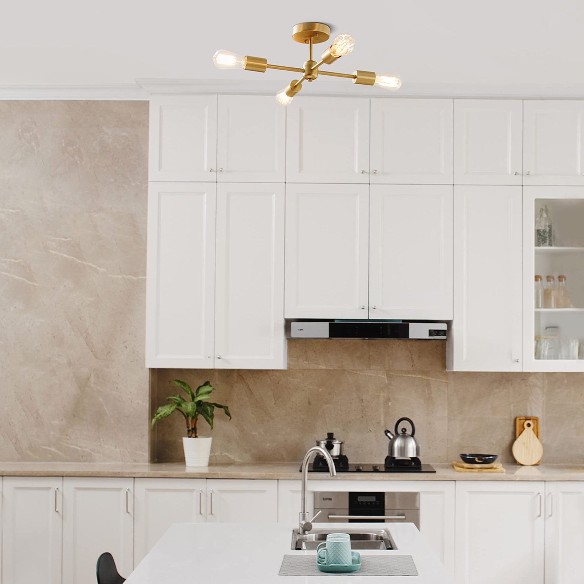 4-Light Matte Brass Flush Mount Dining Light Fixture, E26 Bulb, Ceiling Bedroom Light,