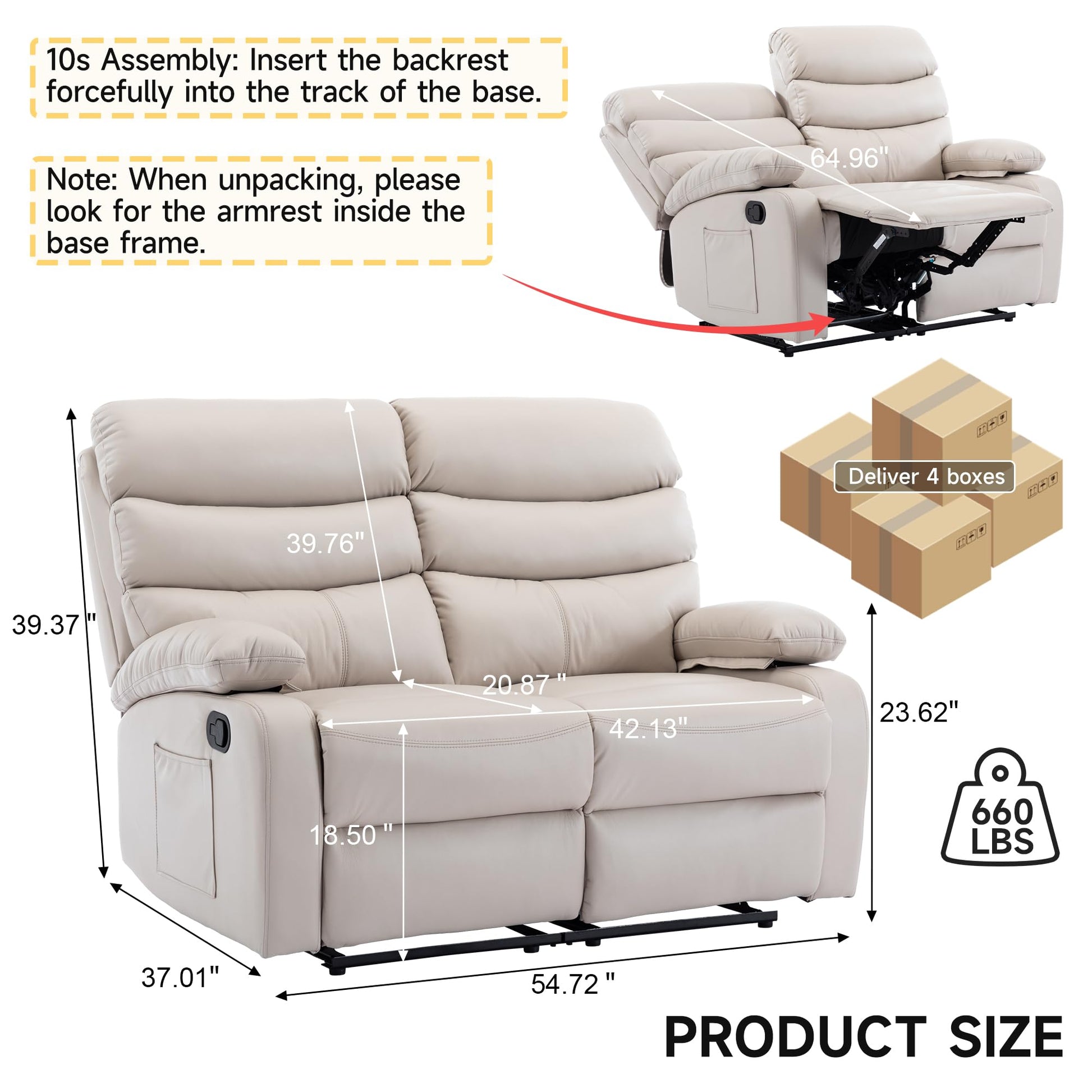 Loveseat Recliner Sofa, Small Sofa Couch, PU Leather Reclining Sofa 2