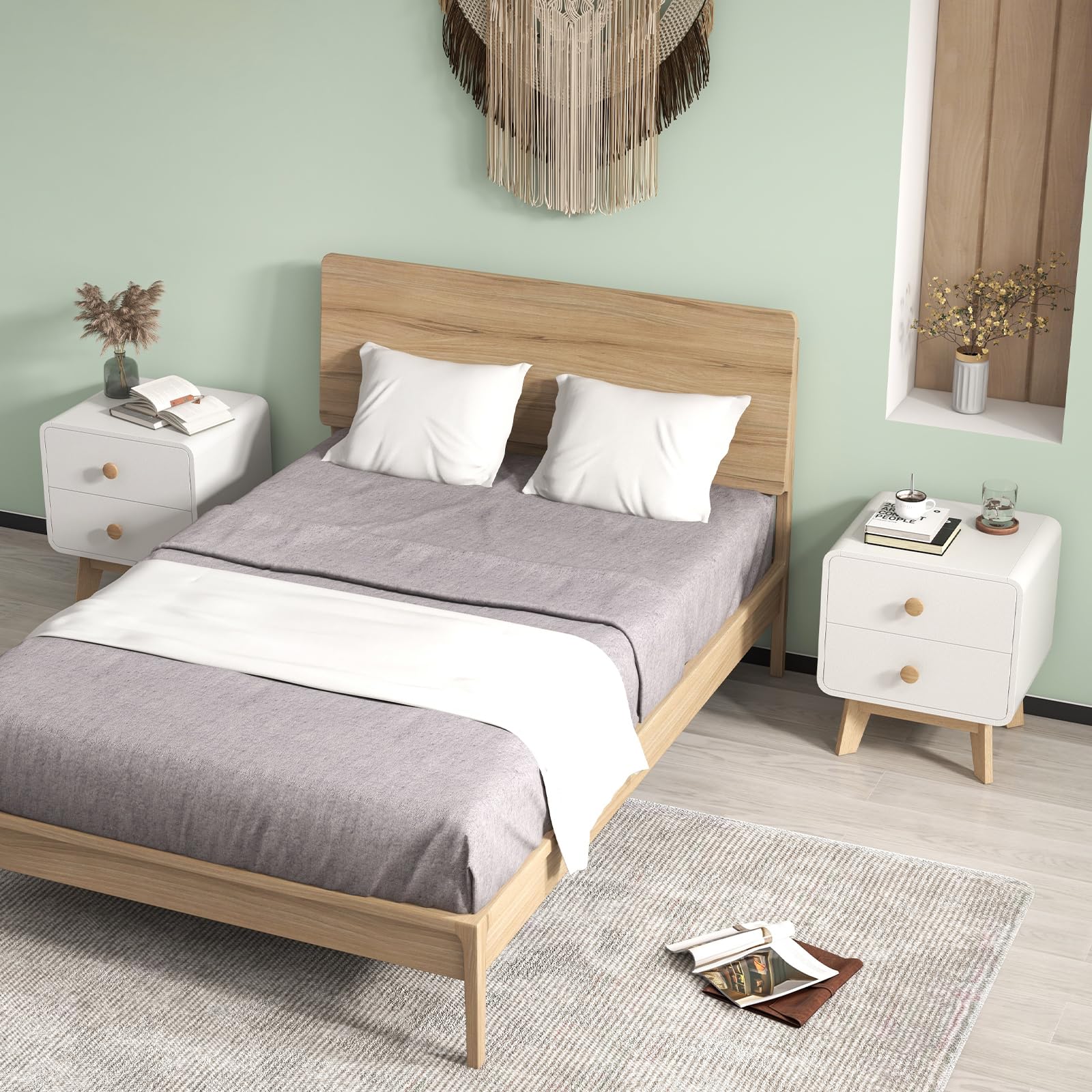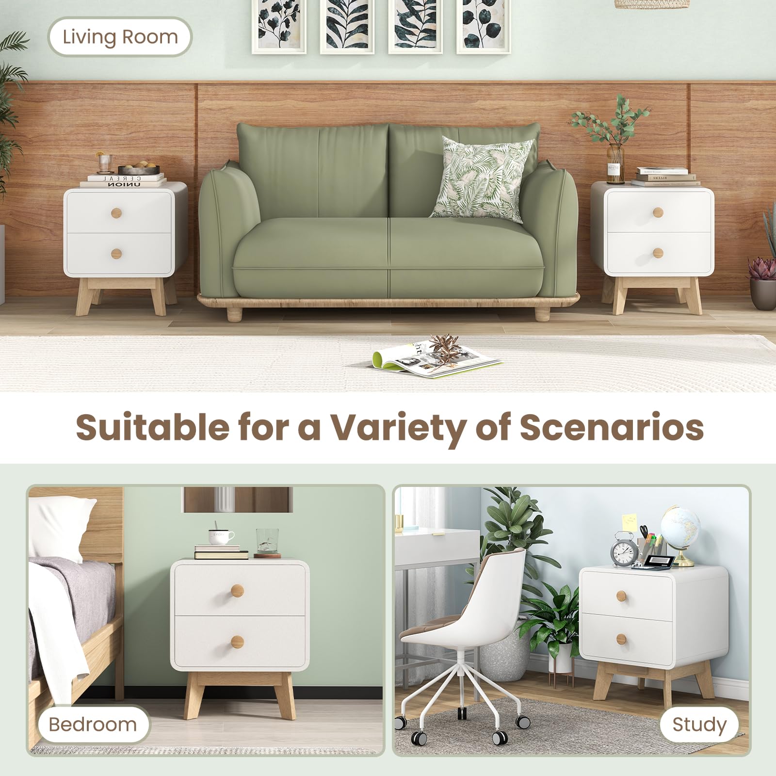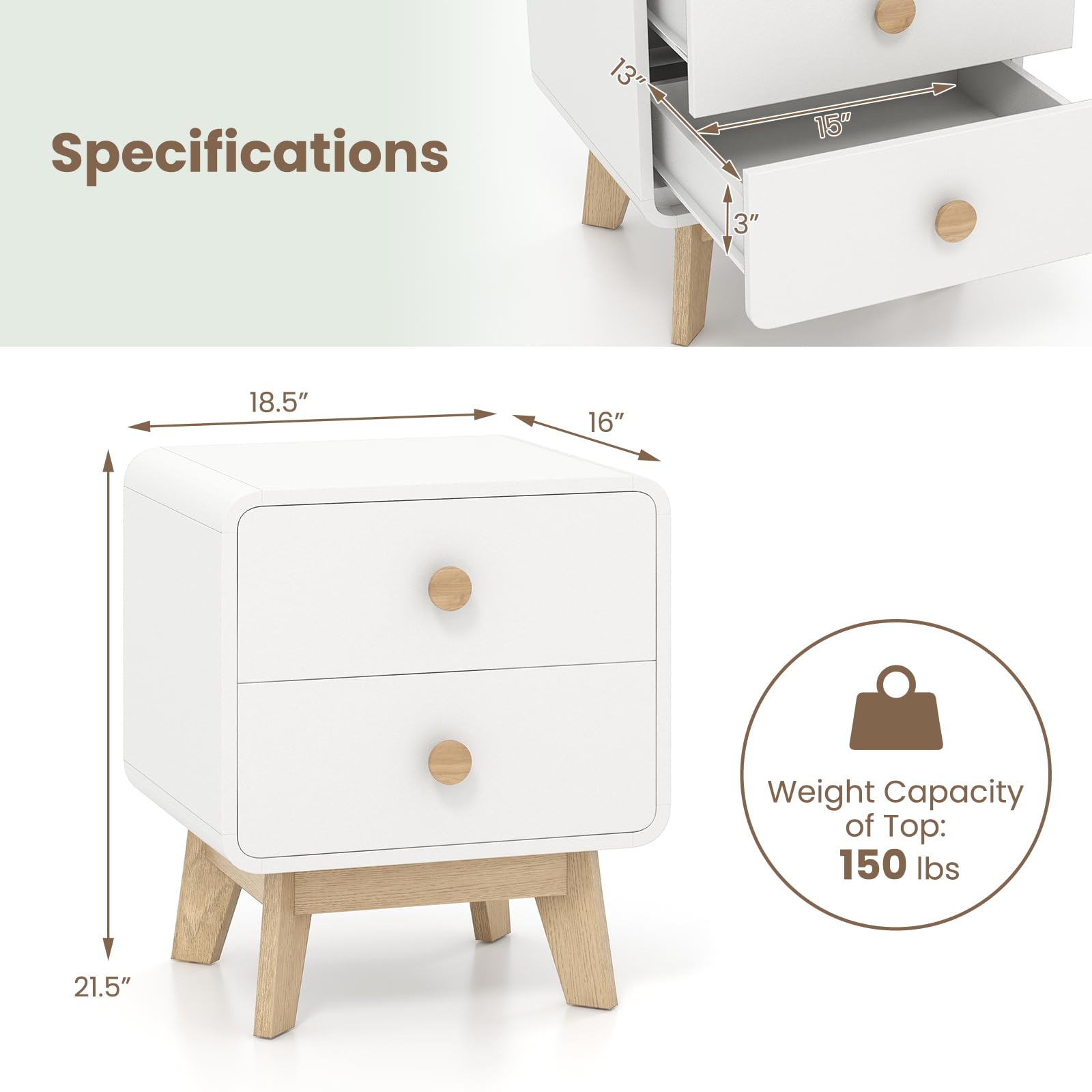 Nightstand with 2 Drawers, Modern Sofa Side Table with Solid Rubber Wood Legs