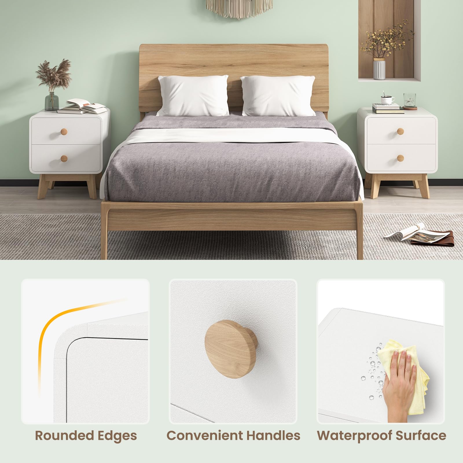 - Considerate Details: Our nightstand features safe rounded edges, minimizing the risk of accidental bumps or injuries. The convenient handles make it easy to open the drawers. Additionally, the waterproof surface of the nightstand makes cleaning a breeze.