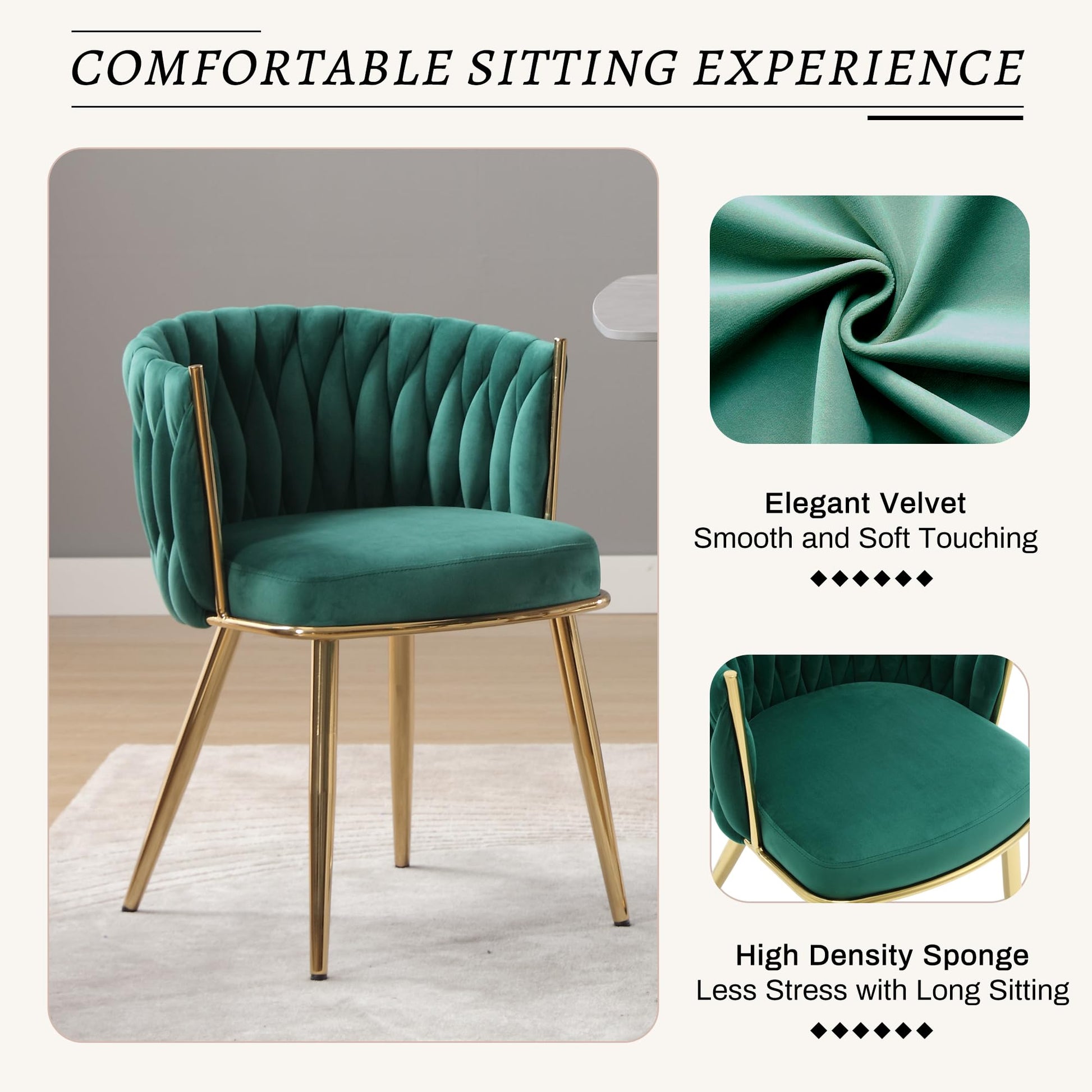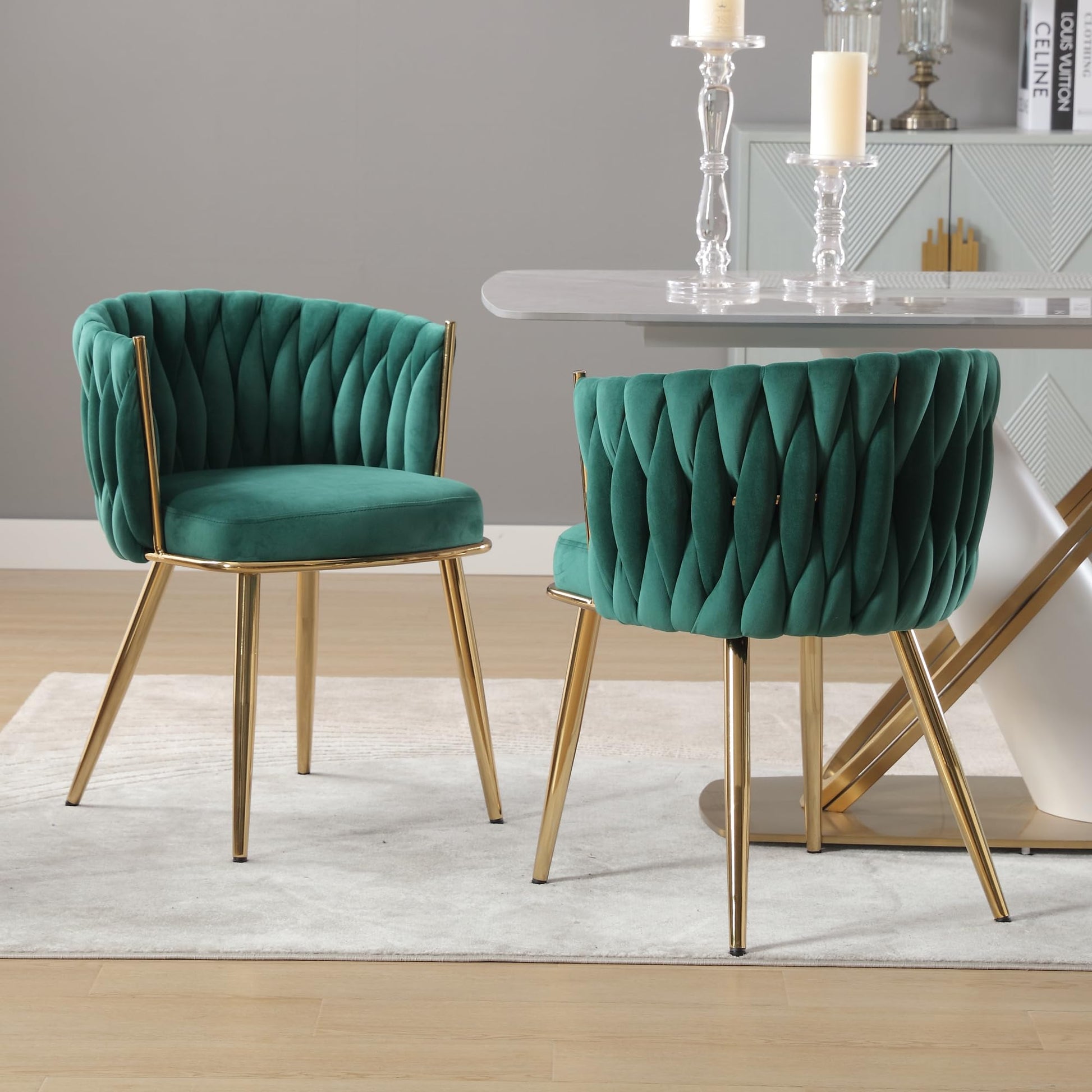 Woven Dining Chairs Set of 4, Velvet Upholstered Dining Room Chairs