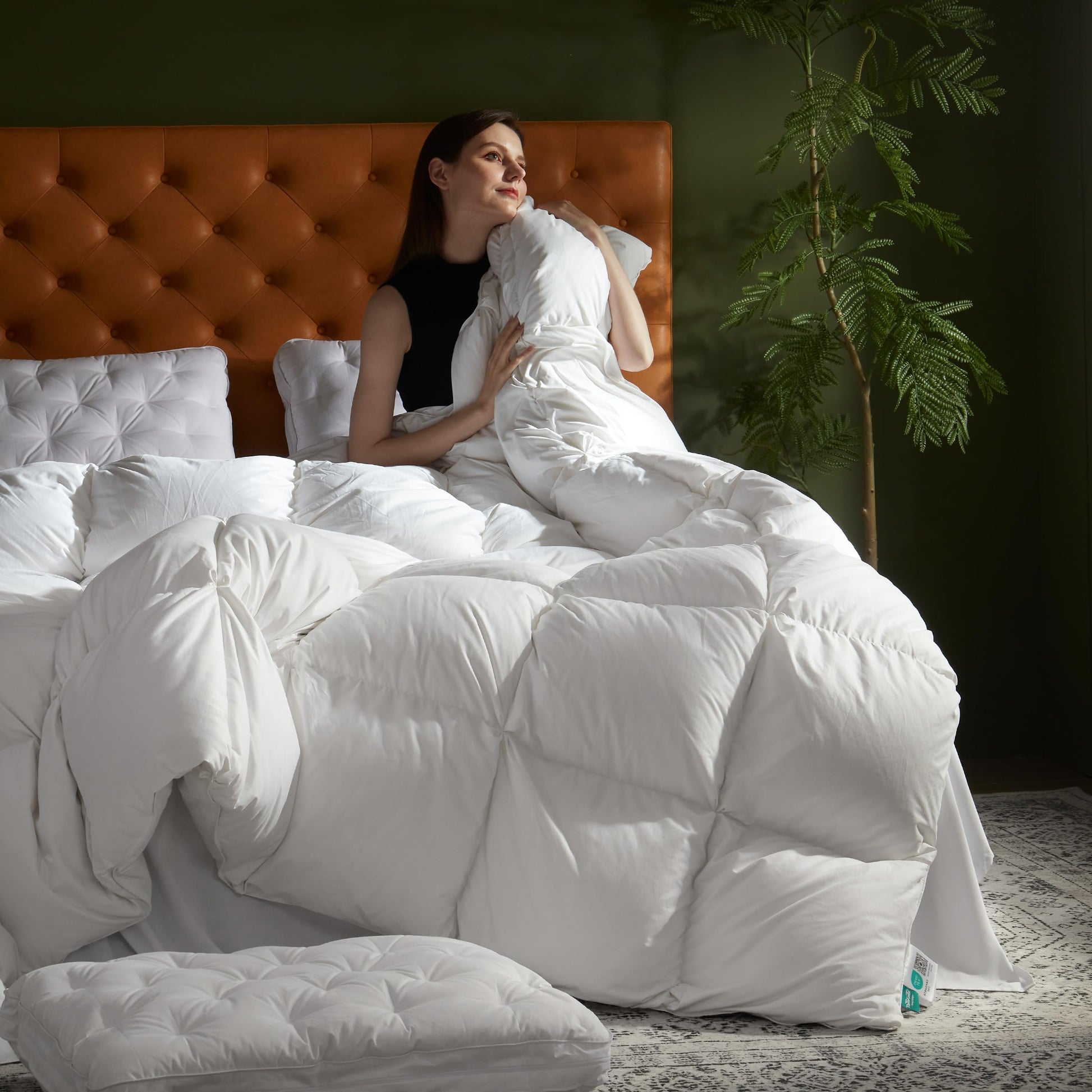 Experience hotel-quality comfort with this premium all-season goose down comforter. Crafted with an ultra-soft 1800 thread count cotton cover and filled with luxurious goose down, this duvet insert delivers exceptional warmth without excess weight. The breathable construction regulates temperature year-round, while the hypoallergenic fill ensures a restful night's sleep. Machine washable for easy care and lasting freshness.