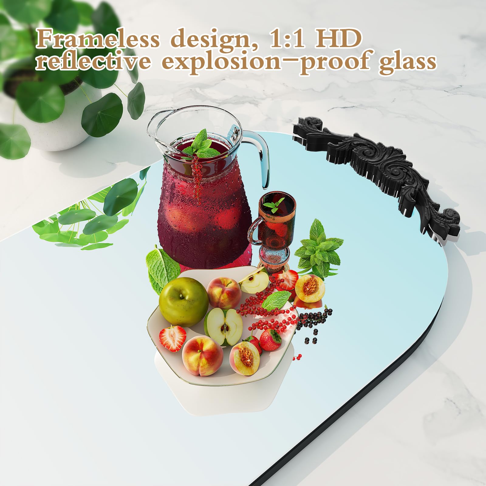 - Frameless carved design with elegant Gothic arched top