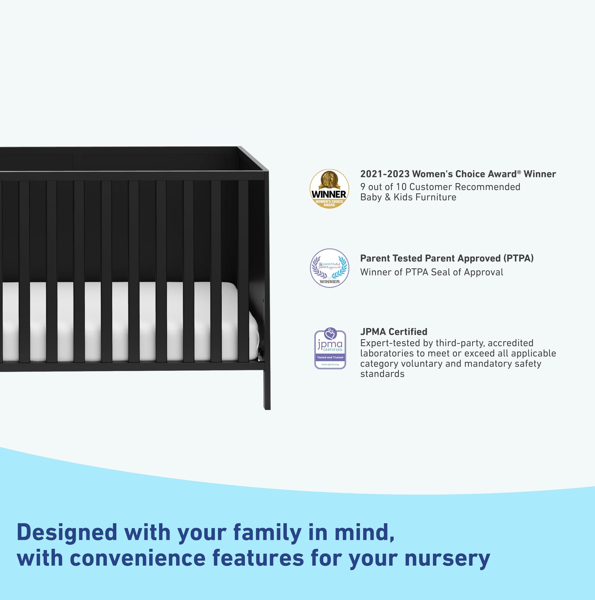 Theo Convertible Crib (Black) – GREENGUARD Gold Certified, Converts from Baby Crib to Toddler Bed and Daybed
