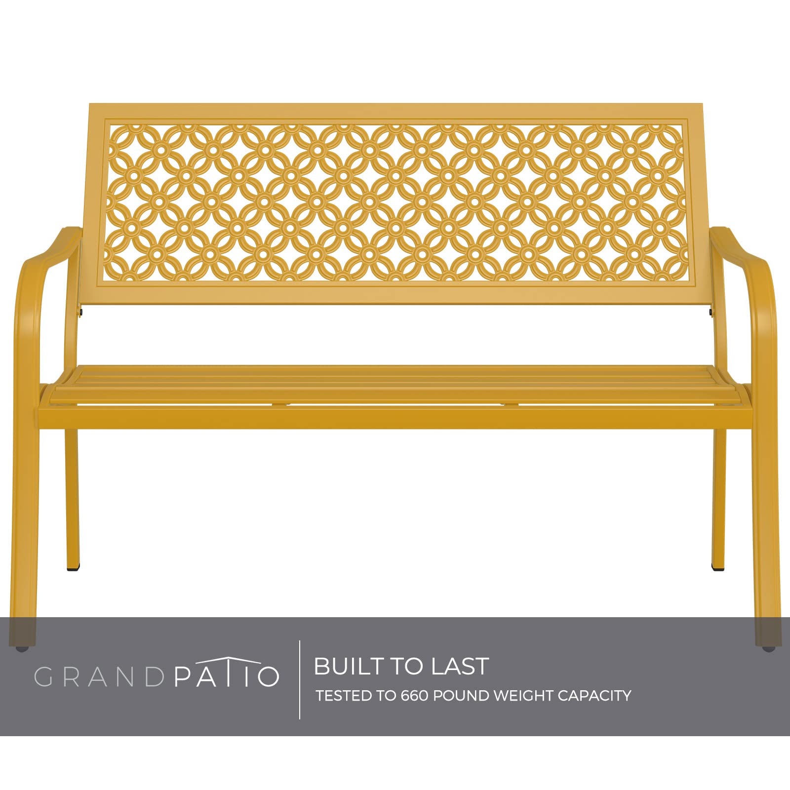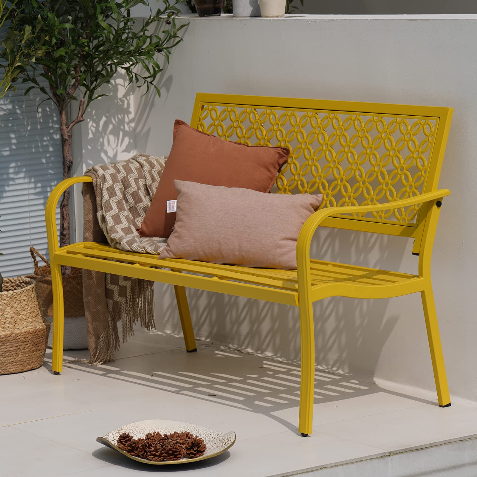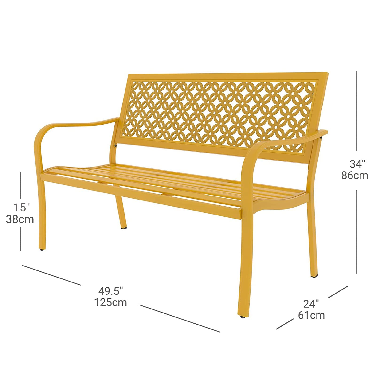 - PERFECT OUTDOOR DÉCOR: The outdoor bench features a unique and beautiful backrest floral design, available in various stylish trendy colors to complement any outdoor setting, be it streets, courtyards, gardens, parks, backyards, porches, and more.
