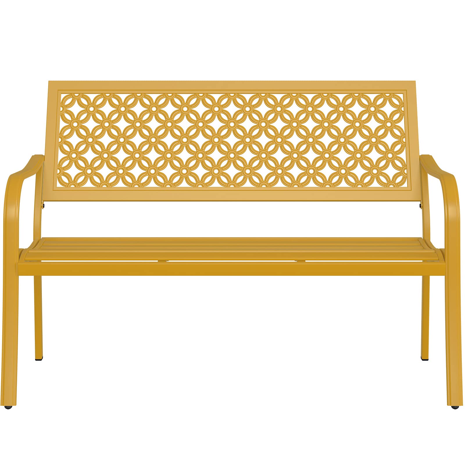 Garden Bench, Outdoor Benches with Anti-Rust Steel Metal Frame, Patio Seating