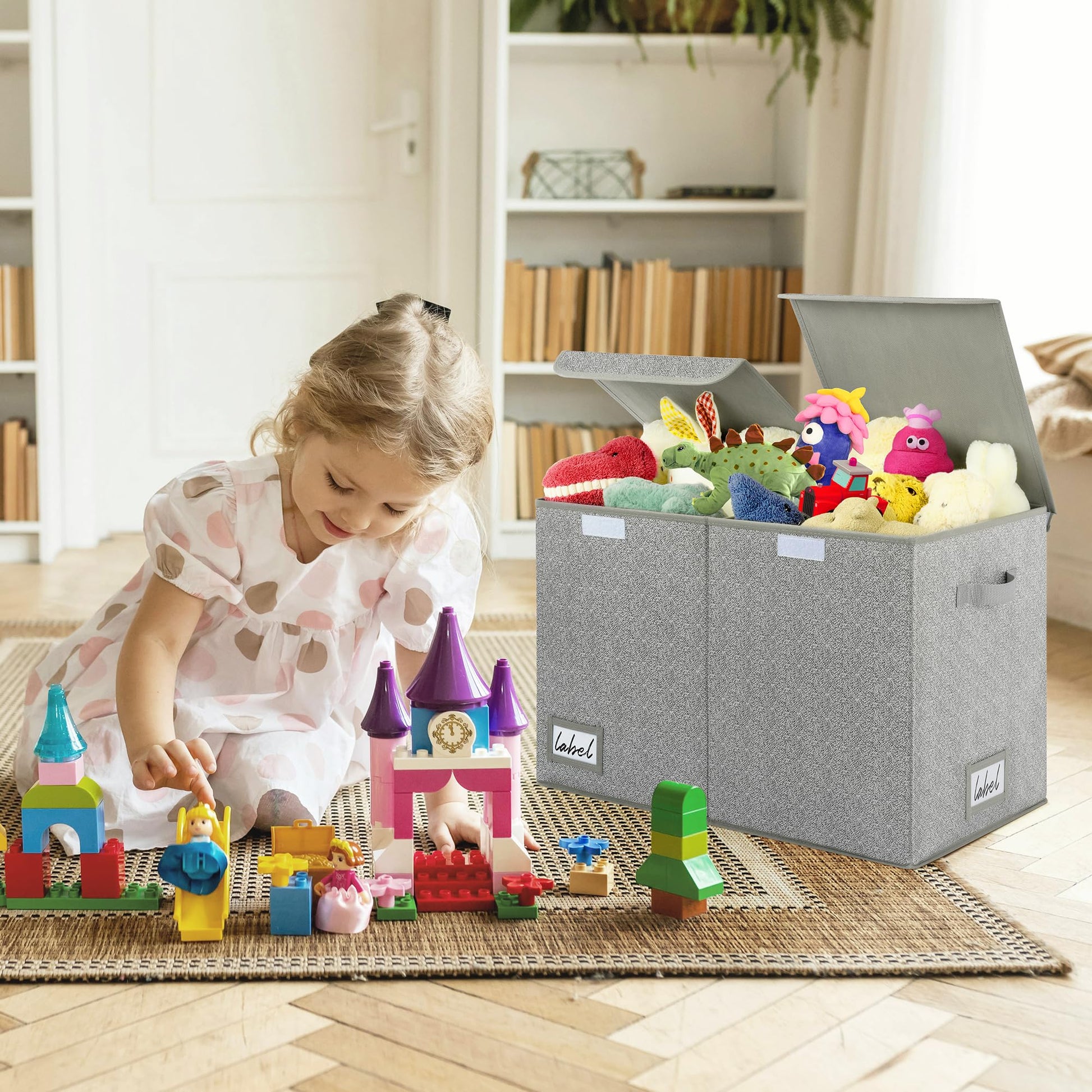 - Divider, Label Pockets & Hook-Loop - Toy boxes for kids extra large come with a removable center divider, allowing for high-capacity storage or 2-section storage. Transparent label pockets make it easy to categorize and organize items, while the lids with hook-and-loop closures are simple to open and close.
