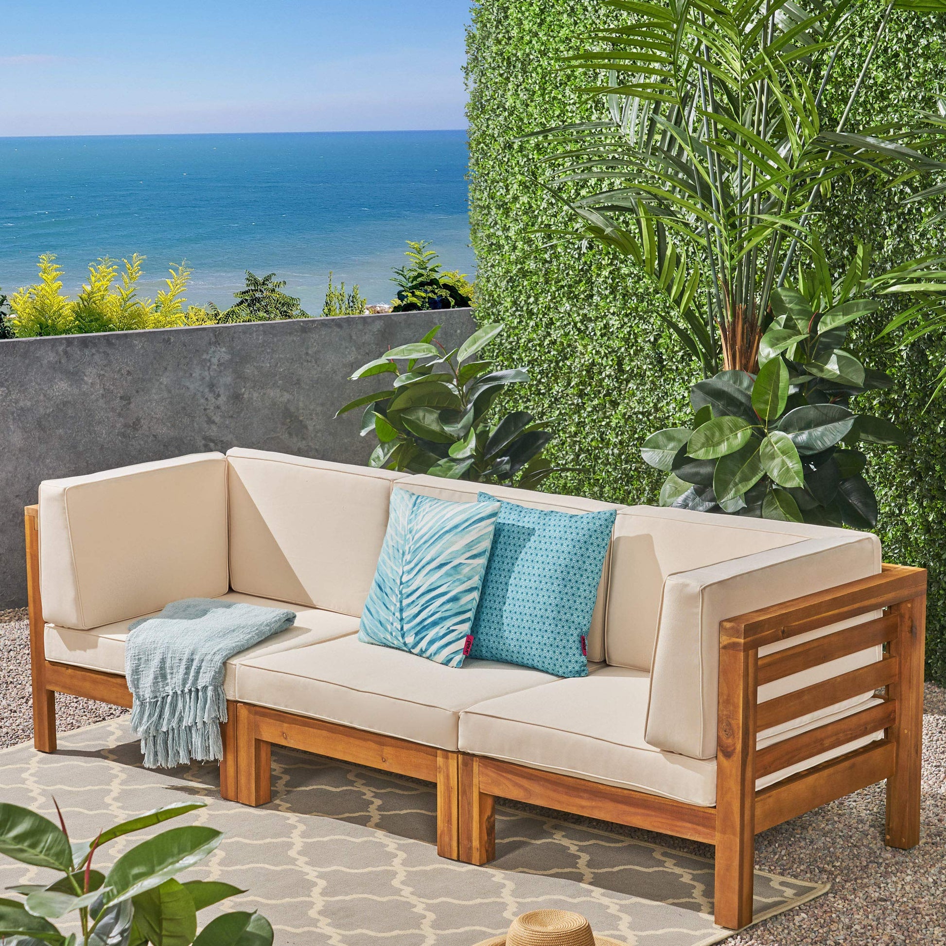 Great Deal Furniture GDFStudio Outdoor Sectional Sofa Set - 3-Seater - Acacia Wood