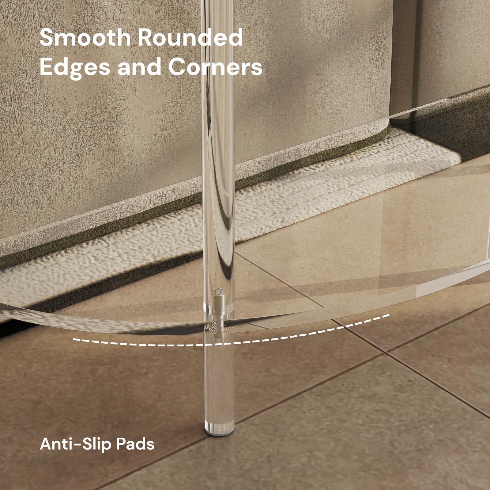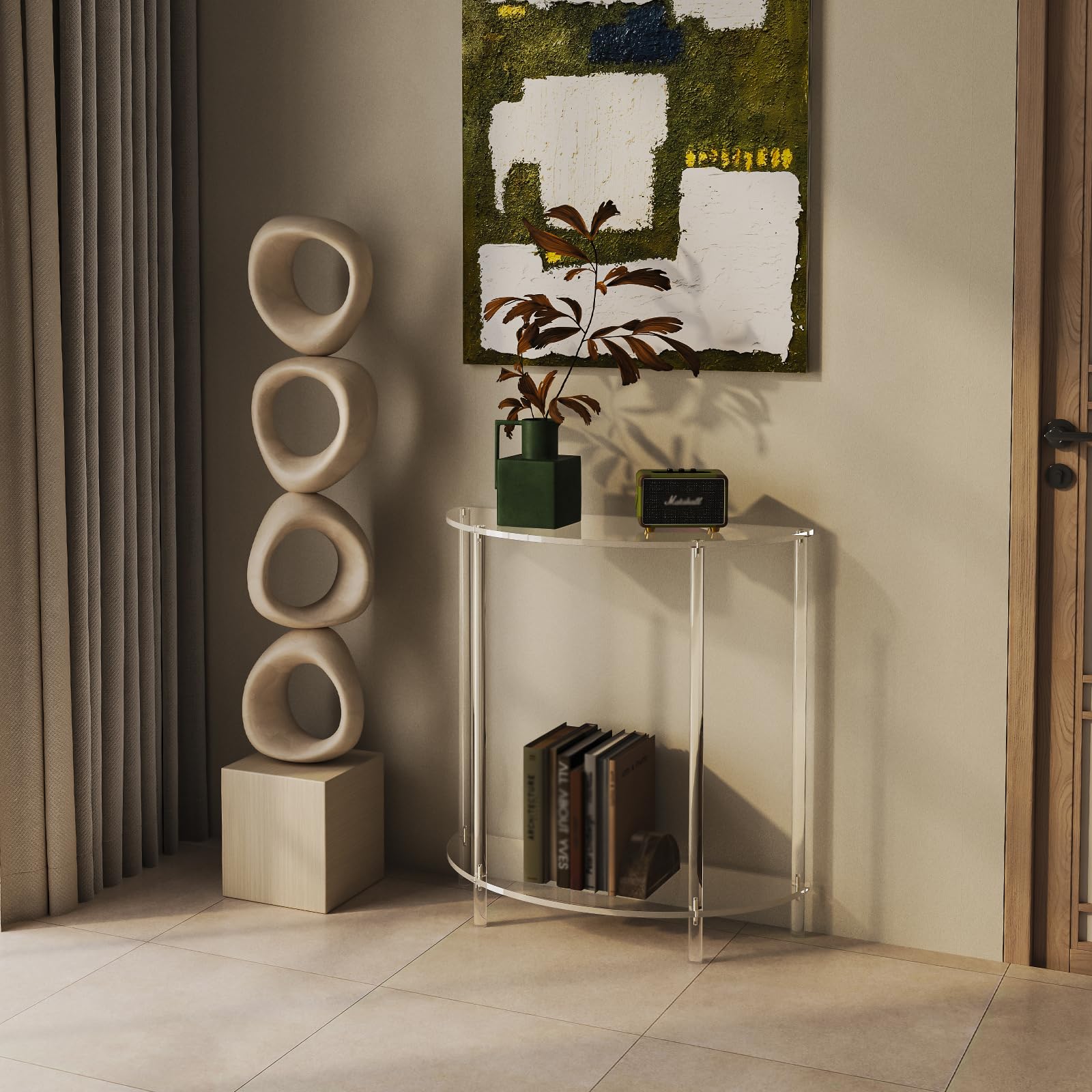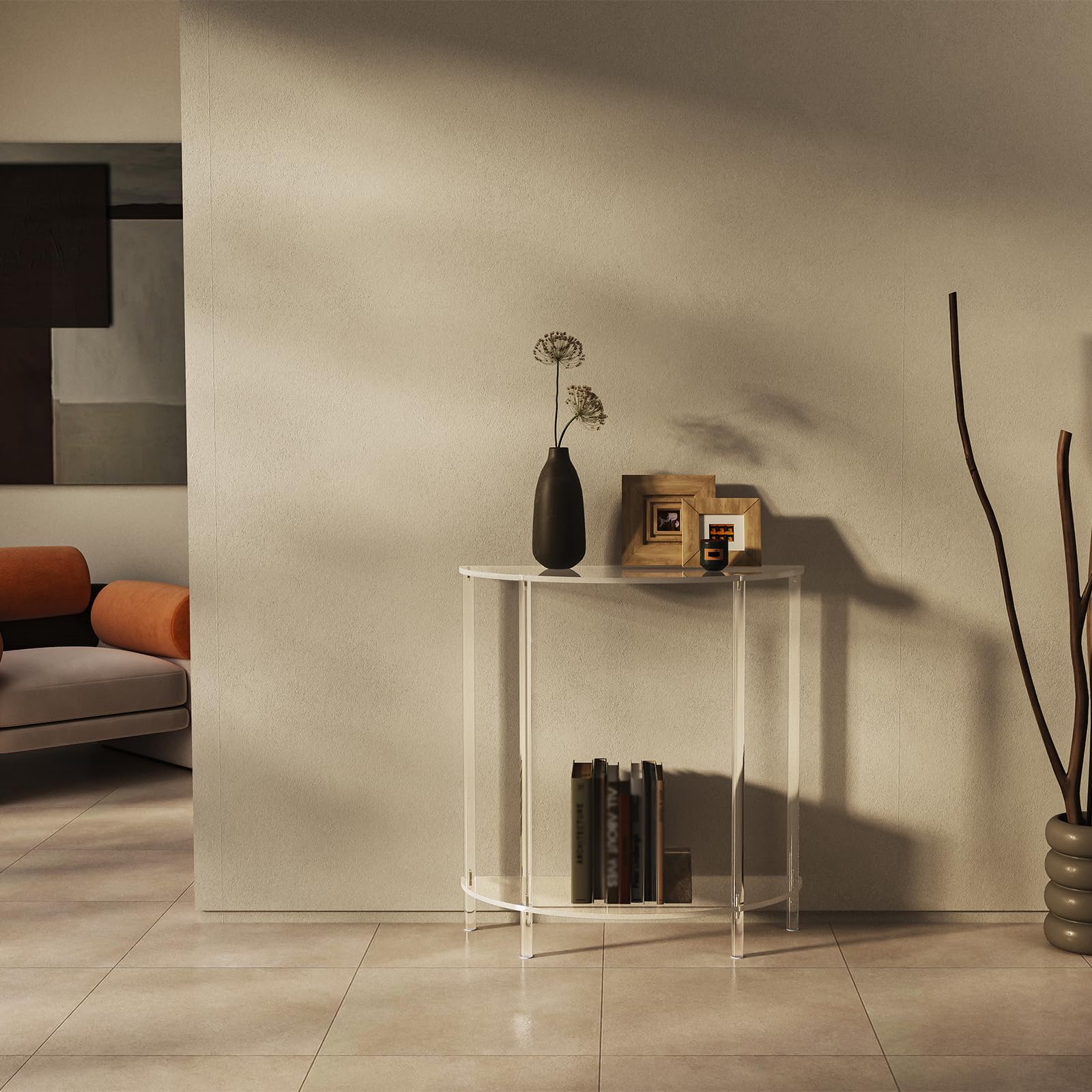 Transform your entryway, hallway, or living space with this elegant half-moon acrylic console table. Featuring a sleek, transparent design and two-tier storage, this modern piece combines functionality with contemporary style.
