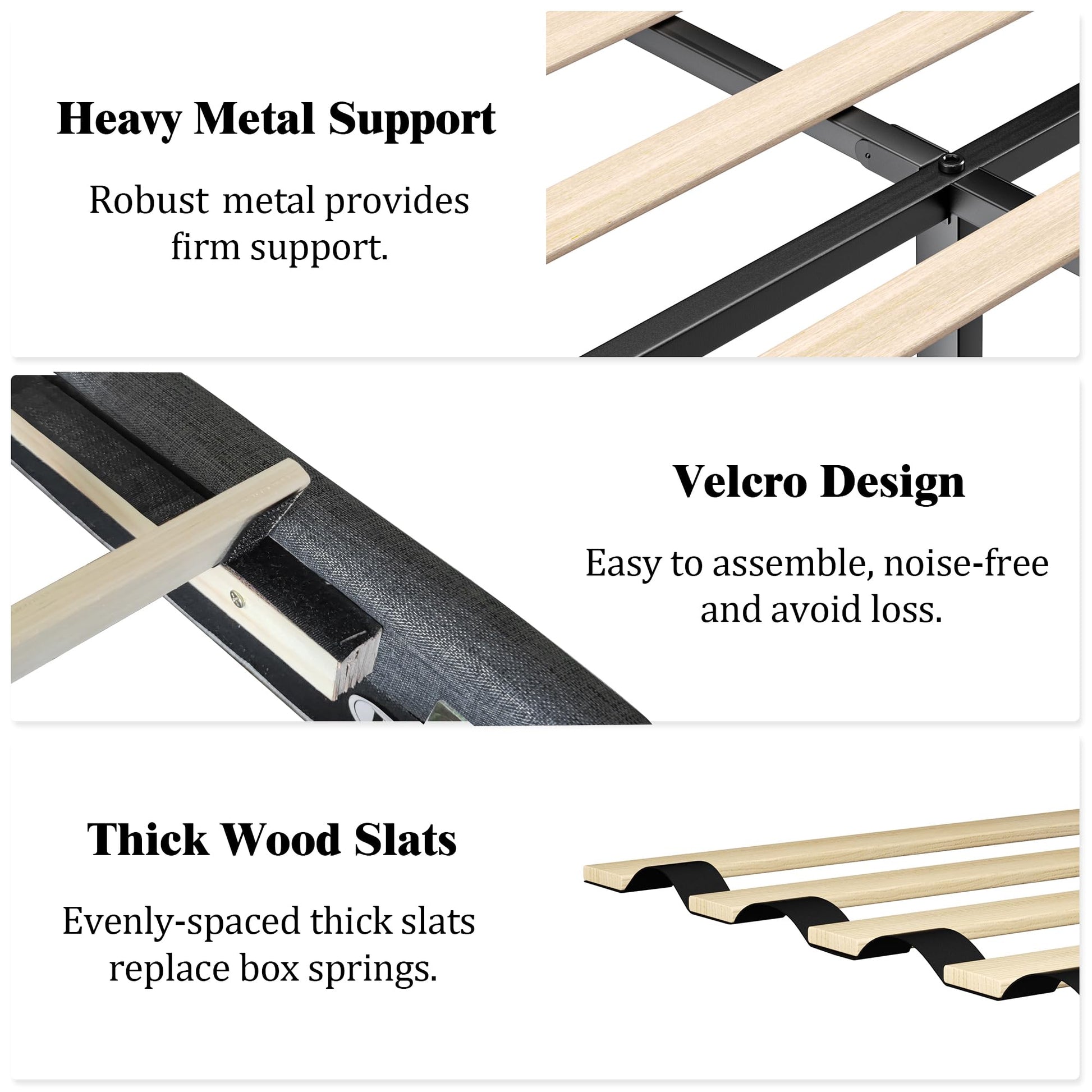 - No Box Spring Needed: Eliminate the necessity of a box spring. Platform-style bed frame features robust slats that offer direct support for your mattress, saving you money and time on setup.