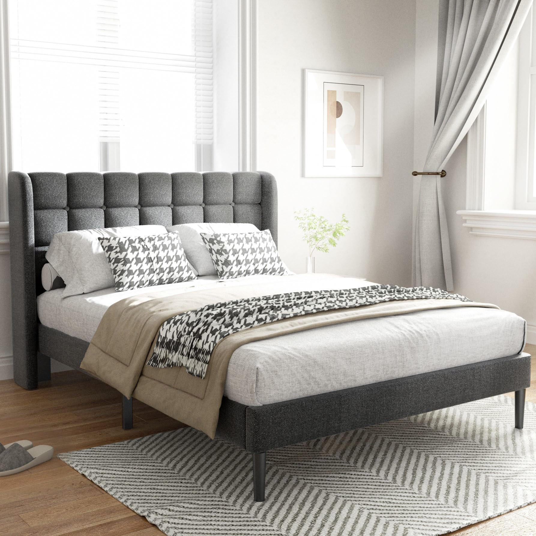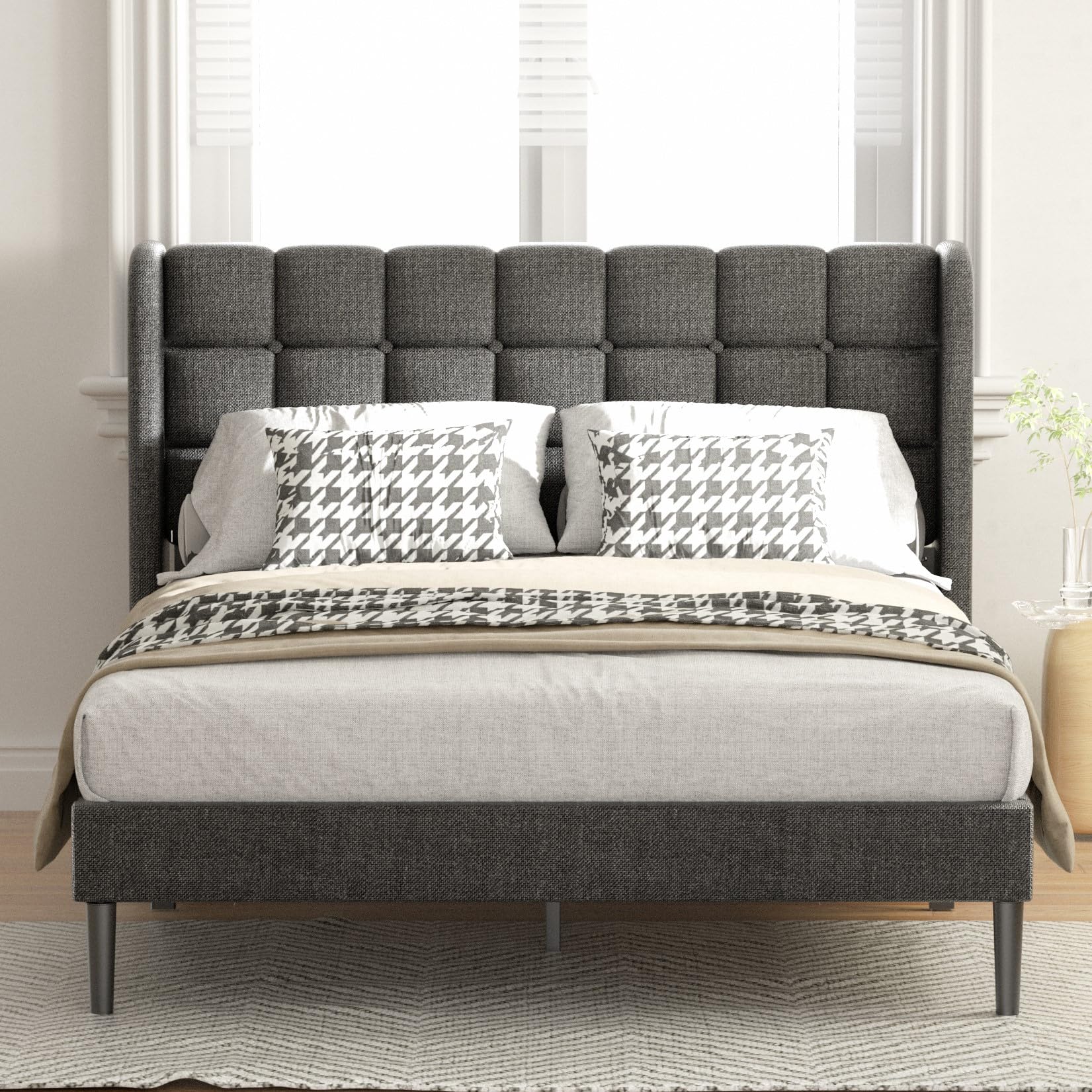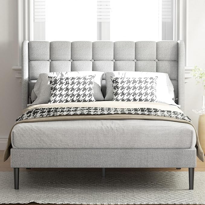 - Comfortable & Elegant: Designed in a modern wingback headboard, premium linen, and soft sponge wrap the entire bed frame, which will add sophisticated style to any bedroom.