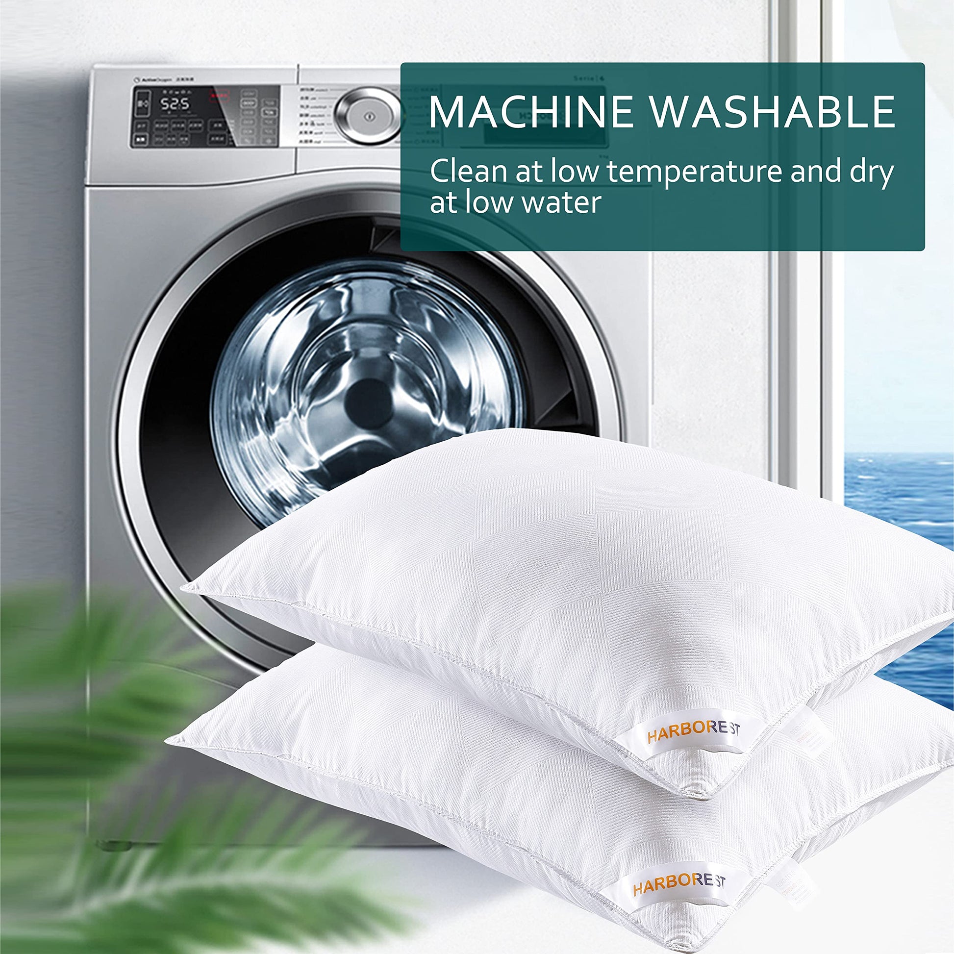 - Easy Home Care: Bed pillows are machine washable with cold water, tumble dry on low heat, easy to maintain and will like new even after repeated washing. Sturdy stitching adds to its durability and prevents fill from leaking out.