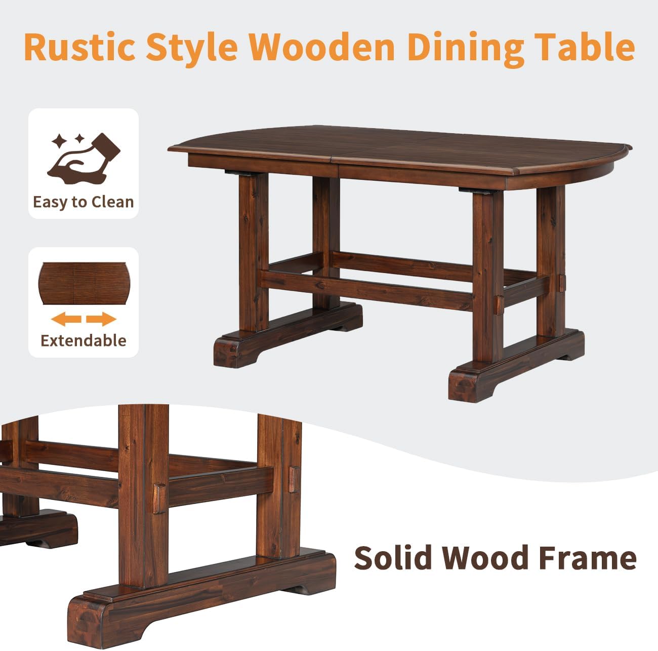 - [MULTIFUNCTIONAL] - This extendable dining table set is a classic addition to any home décor, the 18-inch removable dining leaf extends the table from 60 inches to 78 inches, comfortably seats 6-8 guests and adds more utility to your living space!