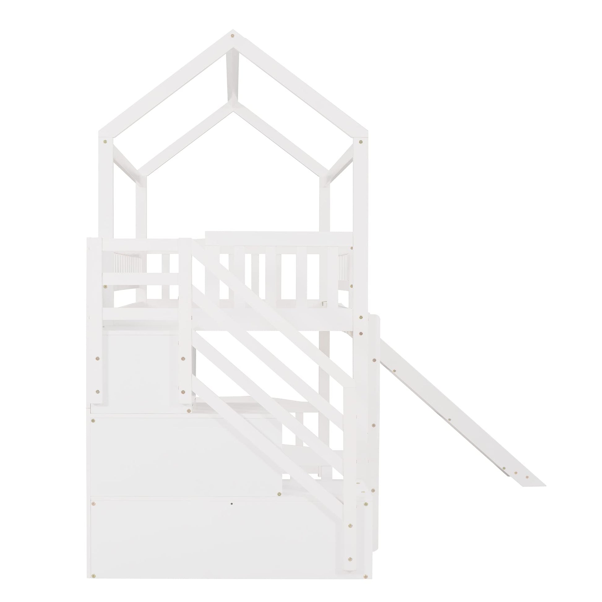 House Bed Loft Bed with Slide, Twin Loft Bed with Stairs and Storage