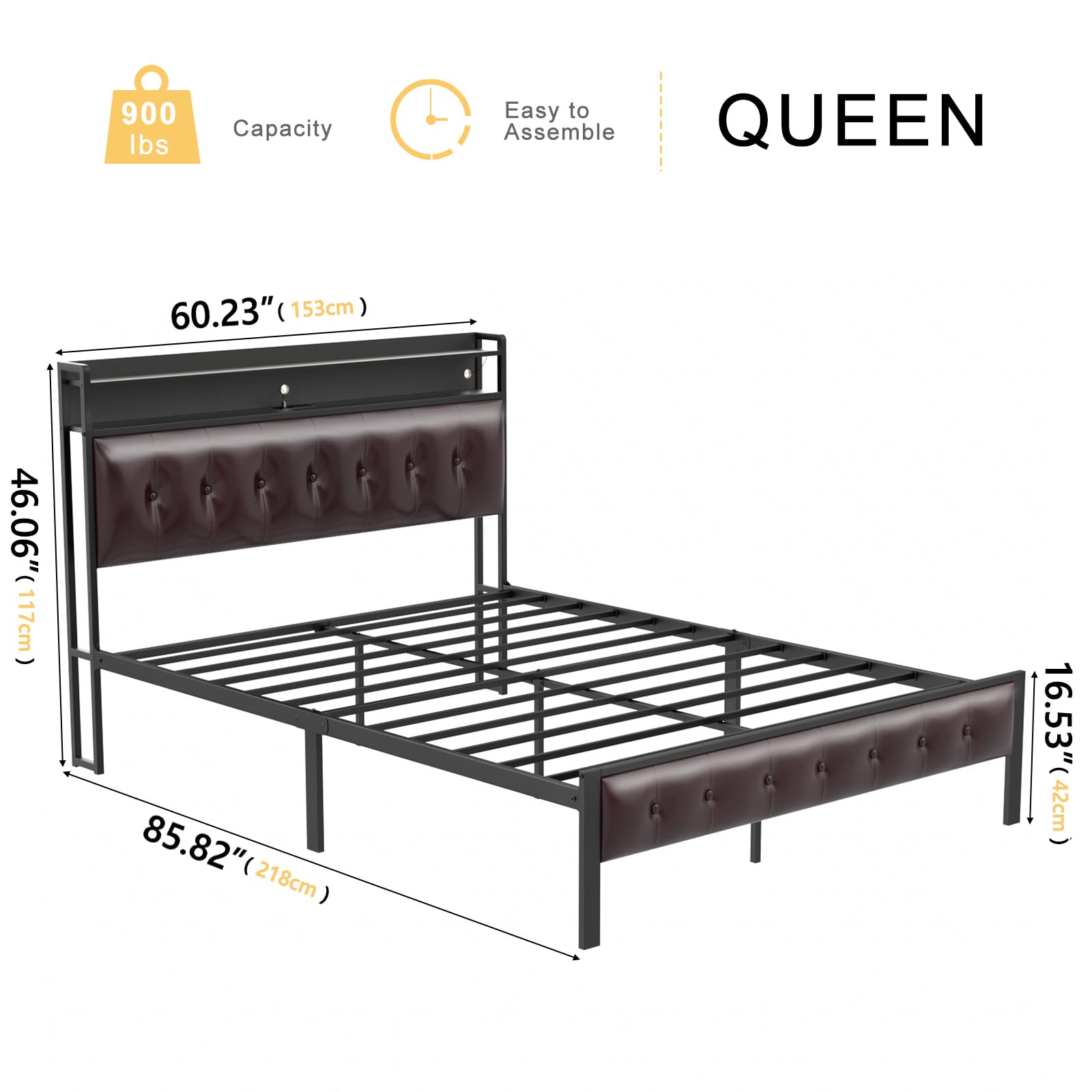 Bed Frame Queen Size with Storage Headboard Platform Bed Frame